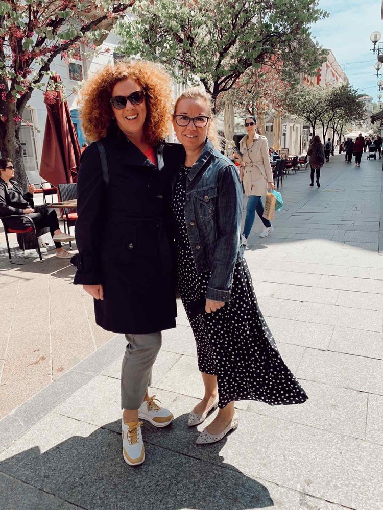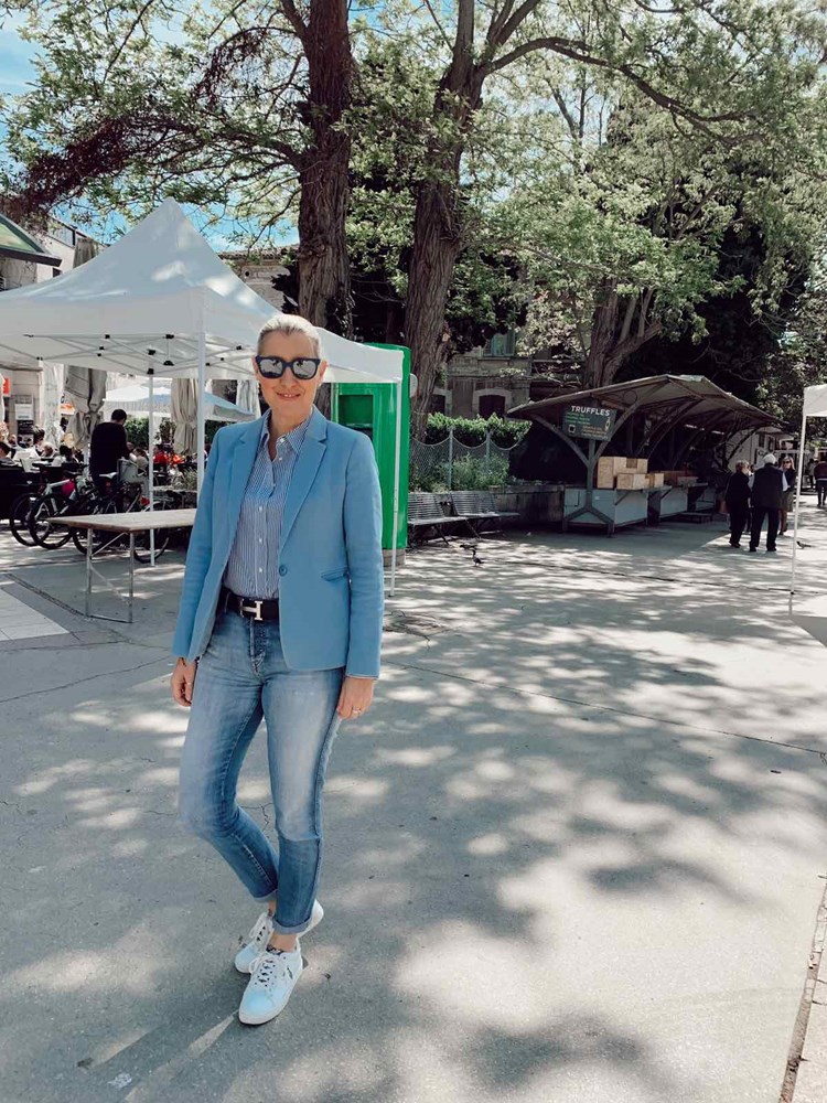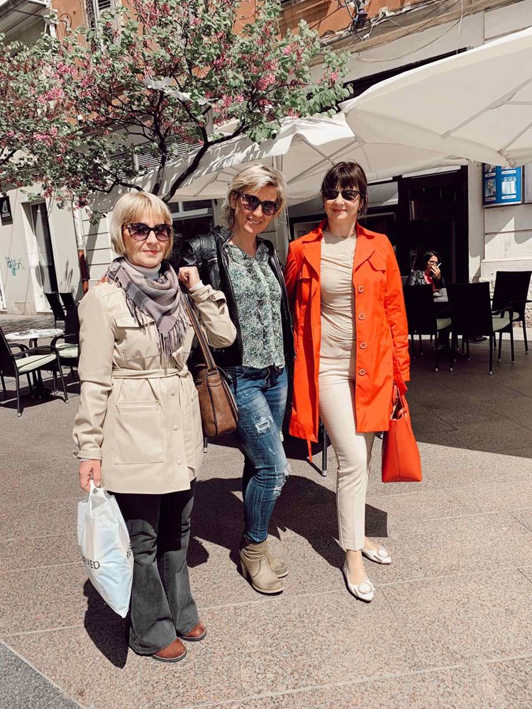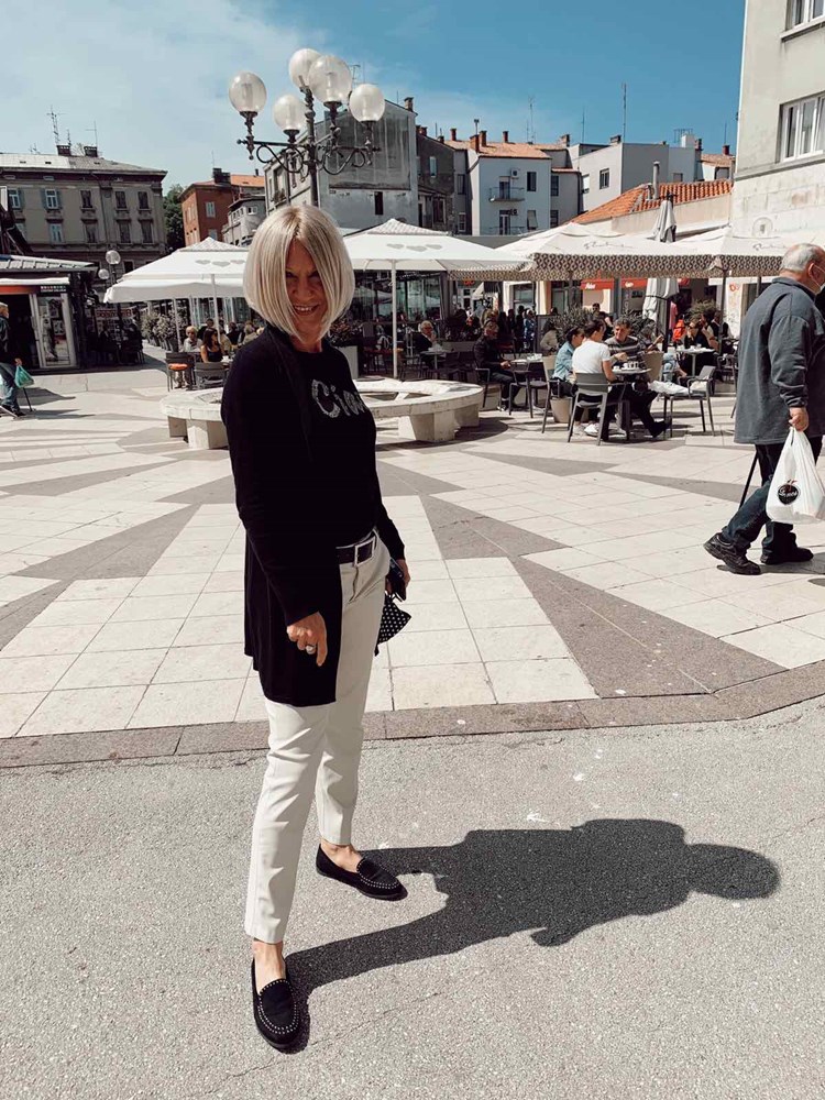 Jadranka sako, a Kristina kožnu jaknu. Tenisice su "must have". Pročelnica za turizam Istarske županije Nada Prodan Mraković uz crvene cipele odijenula je hlače koje su također trend ove sezone. Simpatična je kombinacija šarenih hlača gospodina u sakou sa šeširom.