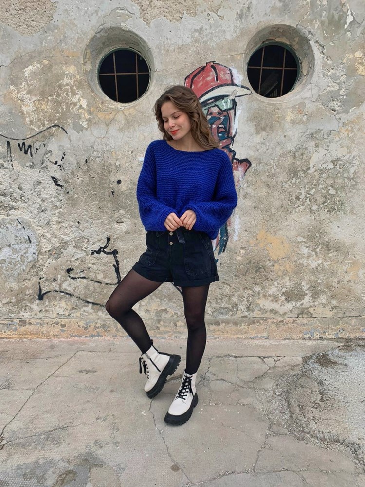 Totalno šik - glomazne čizme u kombinaciji s najlonkama i kratkim hlačama