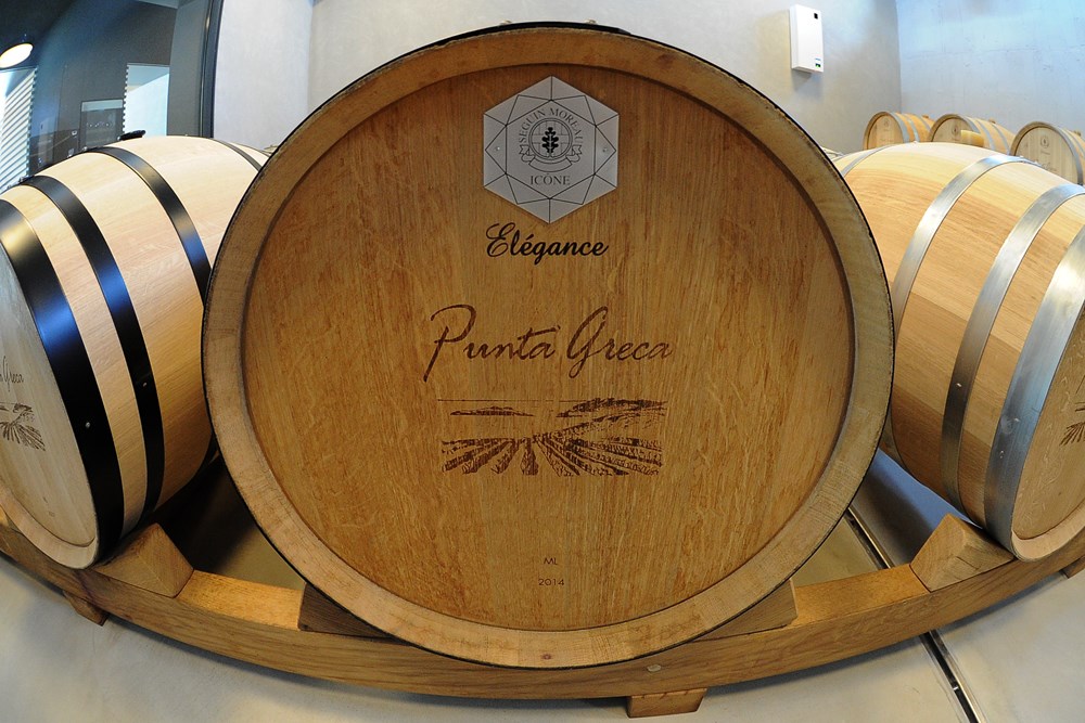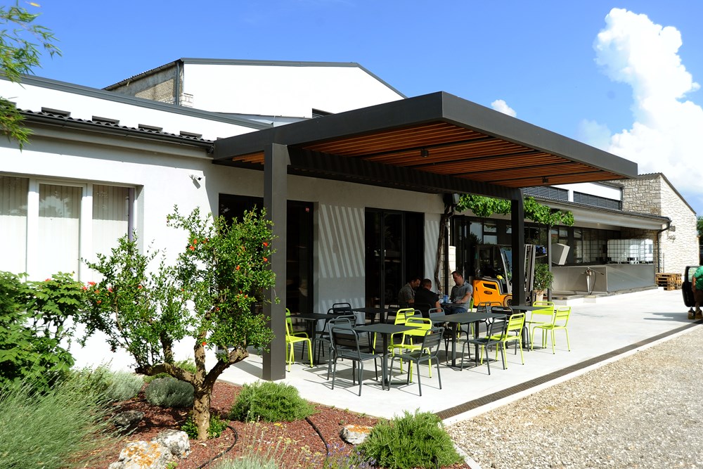 Dok pod njom o izuzetnim naporima uz čašicu vina časka muško društvo - Marko Krstačić, direktor tvrtke Aleksandar Bašić-Palković i nas dva iz Glasa Istre - dotle u podrumu marljivo rade enologinja Ivana Perišić i Davorka Radošević. Dočekuju i brojne kupce vina i maslinovog ulja, jer ovdje je stalno neki šušur. (Zvjezdan STRAHINJA, snimio Milivoj MIJOŠEK)