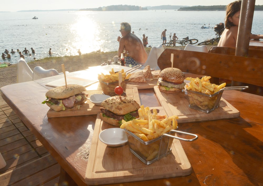 Čisto juneće meso nabavljeno od domaćeg mesara iz Ližnjana, odlična peciva iz Brionke, lokalno povrće, razni umaci koje pripremaju sami. To su u kratkim crtama tajne za odlične burgere koje pripremaju u kampu na Puntiželi, u bistrou Mistral na glavnoj plaži i u RR caffeu na samom ulasku u kamp. Vlasnik Manuel Poldrugovac priznat će da je ove godine jelovnik okrenuo naglavačke, za što je zaslužan njegov prijatelj i glavni kuhar Mario Funčić iz Pule. "Morali smo nešto napraviti i pratiti ponudu u kampu koji je kvalitetu podignuo na puno višu razinu. Nije nam to teško palo, naprotiv, takva je ideja tinjala sve dok se nisu stvorili uvjeti da je realiziramo. Sve se to poklopilo s povratkom Marija iz Amerike, gdje je stekao neprocjenjivo iskustvo vođenja tamošnjih pubova. Mario je, inače, prije odlaska u Ameriku radio kod mene i tada sam ja njega učio poslu, a sada on mene", kaže Manuel.