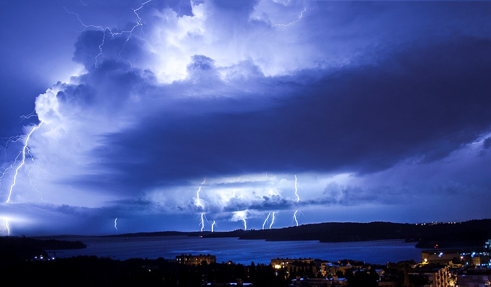 - Te bih godine, kad bi dolazilo nevrijeme s mora, pokupio svoj aparatić i otrčao na Valkane. No, prvi susret bio je strašan. Udar je došao iznenada, nisam ga očekivao. Bio sam na pola puta između zgrade u kojoj stanujem na Stoji i Valkana. Počeo je padati pljusak pa sam se sklonio ispod jednog krovića, kod ulaza u jedno dvorište. Nakon nekoliko trenutaka zadesila me "nesreća". Grom je udario u stablo udaljeno desetak metara od mene i prepolovilo ga, poput motorne pile. Ne mogu opisati jačinu tog praska, ne mogu ga usporediti niti s petardom, niti s ijednim pirotehničkim sredstvom, niti s bombom. Prasak je bio zaglušujuć, zvonilo mi je u ušima sigurno pola sata, naježio sam se, osjetio sam miris paljevine. To mi je bilo prvo i najgore iskustvo, ali me nije omelo da nastavim u tom smjeru. Nakon toga ipak nisam odustao, nego sam nastavio prema Valkanama, gdje sam fotografirao crno nebo nakon pljuska. Počeo je padati i led, pa sam se sakrio u beach bar na Valkanama. I te prve fotke su uspjele, dobio sam ono što sam htio iako sam imao kompaktni fotoaparat, prisjeća se Sendi. (Mirjana VERMEZOVIĆ IVANOVIĆ, fotografije Sendi SMOLJO)