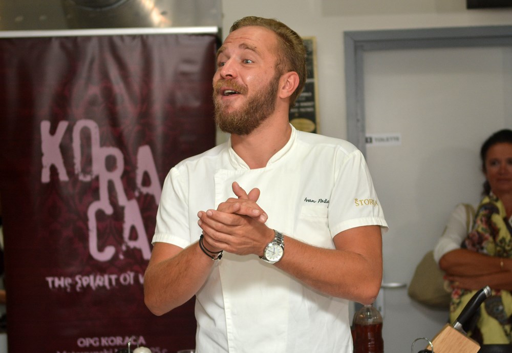 Najozbiljniji i jedini koji nije degustirao vina Korace bio je najmlađi polaznik Jan koji je s tatom došao na radionicu. Ovaj 11-godišnjak kuhati je počeo sa sedam godina. Kaže prvo paštu, pa roštilj na Fratarskom, uslijedilo je povrće na ploči, a potom je prešao na meso i ribu koju je filetirao na radionici, a prethodno je kod kuće već frigao i solio sardele.
