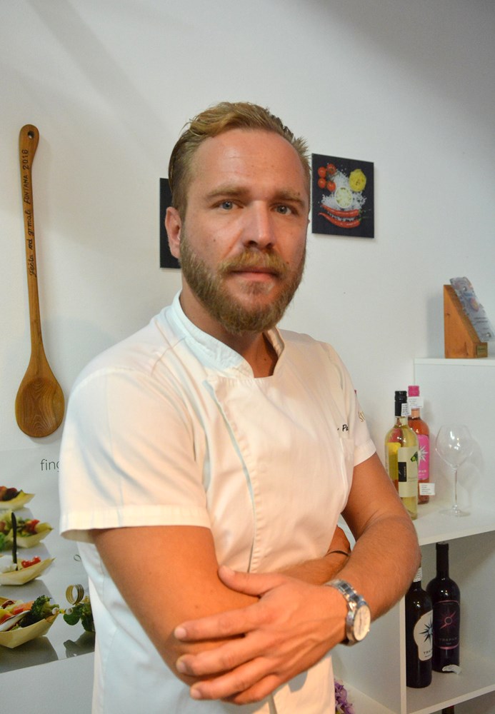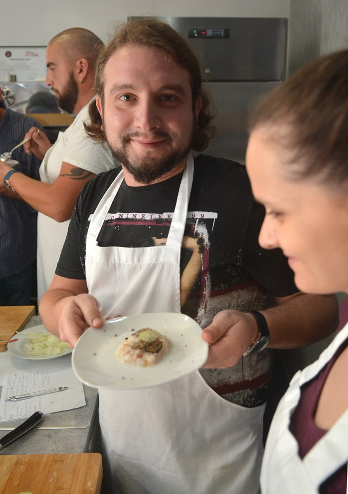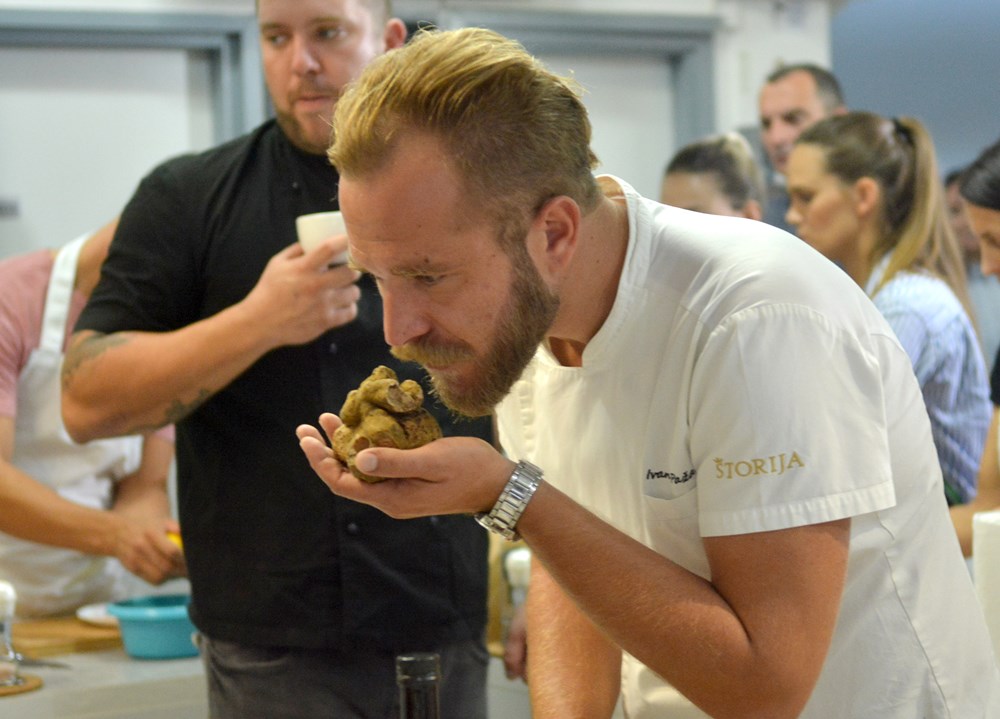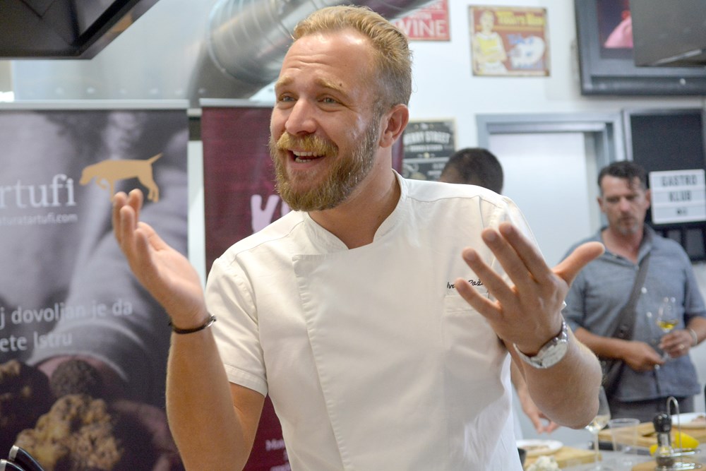 "Oslobodite radne jedinice" najavljivao je domaćin nakon svakog jela, dok je Pažanin šarmatno i vrlo elokventno vodio radionicu. Dva puta je promijenio uniformu, prvo bijelu, pa crnu. Tko zna, možda da mu paše uz tartufe? Esteta je, kako u odjeći tako i u hrani. Pravi gastro hipster. Odrađuje sve nenametljivo sa stilom