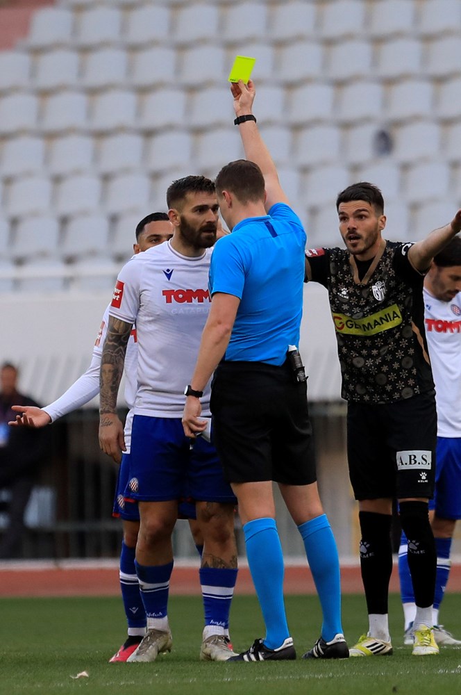 Utakmica 28. kola SuperSport HNL-a: Hajduk - Istra 1961. Gradski stadion Poljud. Sudac: Ante Čulina (Zagreb). Pomoćnici: Kolarević i Vuković (oba Zagreb). VAR: Dario Bel (Osijek).