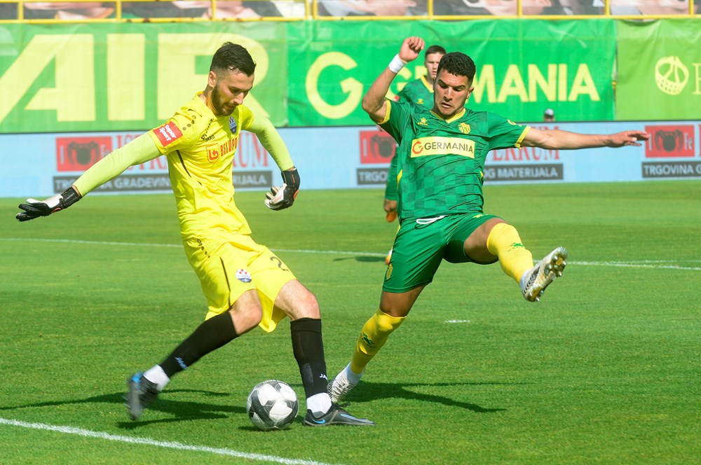 Gonzalo Garcia odlučio se za promjene u startnoj postavi, dijelom i zbog toga što nije mogao računati na Advana Kadušića zbog problema s koljenom. Optirao je za trojicu stopera, preselivši Mlinara na klupu, dok je Lisica zauzeo mjesto Kadušića na desnom krilu. Možda pomlađeni gostujući sastav i nije želio zaigrati "bunker" ali «zeleno-žuti» su vrlo brzo zagospodarili terenom podigavši zadnju trojku do centra i tražeći načina da ugroze Suška.