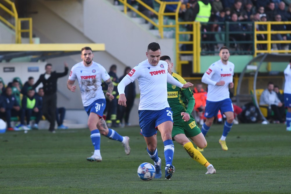 Gotova je utakmica na "Drosini". Hajduk je slavio golovima Emira Sahitija u prvom i Marka Livaje s "bijele točke" u drugom poluvremenu.