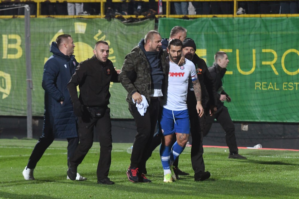 Po dovršetku utakmice, nekolicina navijača Torcide je uletjela na teren. Zaštitari su pokušali smiriti situaciju, no nakon što nisu uspjeli, intervenirala je interventna policija
