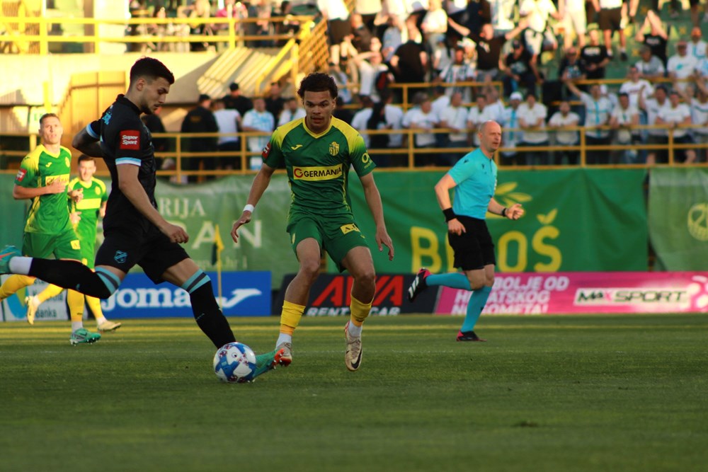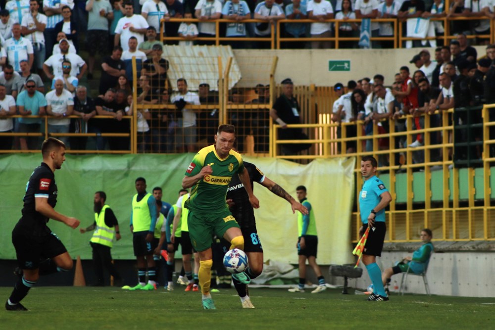 Gotovo je prvo poluvrijeme s prednošću Riječana 1:0 zahvaljujući pogotku Tonija Fruka postignutim nakon odličnog prodora Marka Pjace