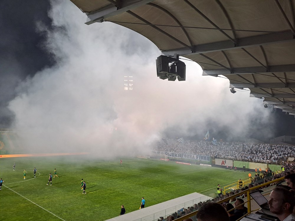 17' Demoni ubacili tri baklje u gostujući kazneni prostor, sudac označio kratki prekid
