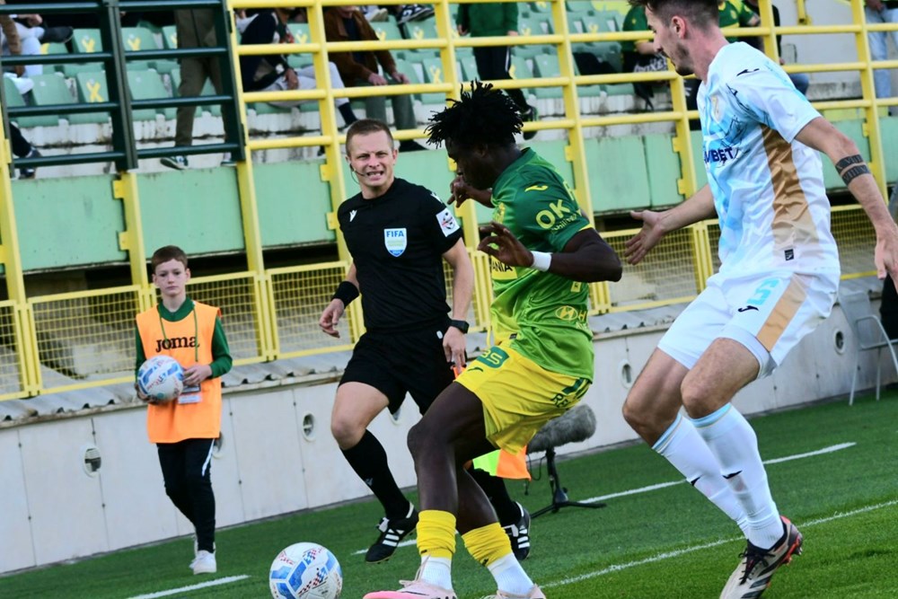 No, sudac Mateo Erceg nije se oglasio. Podijelio je u prvom dijelu čak šest žutih kartona, za divno čudo četiri igračima Rijeke, a tek dva Zeleno-žutima. Dva je kartona Riječanima podijelio zbog opasne igre, odnosno nakon što su Rukavina i Smolčić nogom udarili u glavu Valinčića i Iovua. Pritom sudac nije "sjeckao" igru, dopuštao je malo čvršće startove što je pridonijelo dinamici igre.