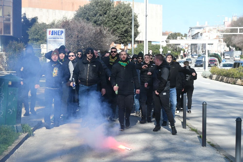 Atmosfera u Puli već satima prije početka utakmice između Istre 1961 i Hajduka bila je na vrhuncu. Rijeke navijača, prepoznatljivih po zeleno-žutim i bijelo-plavim obilježjima, šalovima i majicama, slijevale su se prema stadionu Aldo Drosina iz svih smjerova, gdje je u 15 sati započeo dugoočekivani nogometni spektakl.