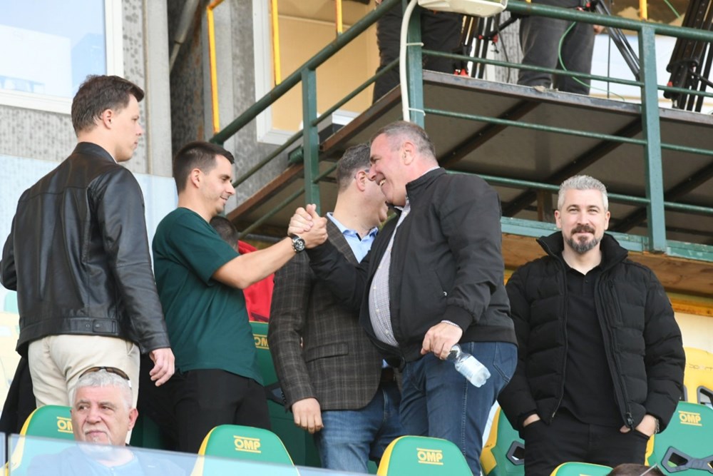 Svoja mjesta u VIP loži pulskog stadiona zauzeli su i čelnici klubova. Predsjednik Istre Branko Devide Vincenti je u društvu izvršnog direktora Mikela Lauzurice Evoleta, dok je na drugoj strani smješten predsjednik Rijeke Damir Mišković.