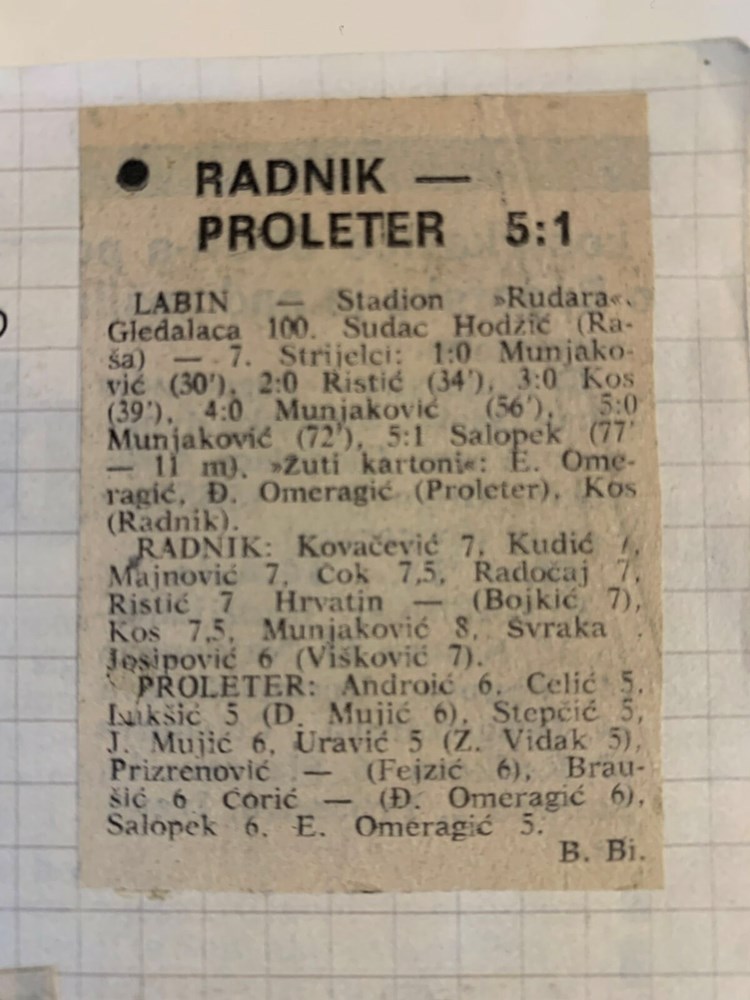 - Niti politika, niti rat niti ništa i nitko nije i neće nama ni u nama oduzeti sjećanja, misli i pripadnost tom klubu, neće nam oduzeti sportski duh. Dokaz smo mi nas 70-tak koji smo se danas nakon 35 godina našli i sakupili., zaključio je Bastijanić te pozvao sve da minutom šutnje odaju počast svima onima kojih više nema među njima koji su igrali, gradili i baštinili vrijednosti kluba. Prisjetili su se pokojnih predsjednika kluba Mirka Kramarića, Matije Lisica, Đure Tošića, suigrača, kapetana Đura Veriba, Zvjezdana Čoka, Roberta Mengovića, Ivice Kovačevića, Senada Alića, Slobodana Paliske, Vase Majnovića, oružara Peštalića te svih onih koji su igrali i radili u tom nogometnom klubu čiji je prvi trener bio Meho Trumić, drugi Hasib Gušić, treći i najdugovječniji Branko Jurković i posljednji igrač-trener Mladem Bastijanić koji je s Marko, Đinićem organizirao druženje. Zanimljivo je da je Radnik labinskom Rudaru dao i neke igrače, Nedeljka Josipovića, Senada Alića, Seada Munjakovića, Marka Jurkića, Munevera Bojkića, Zehru Osmića i Ivicu Kovačevića a u suprotnom pravcu uz Rudara u Radnik došli su igrati Marijan Kos i Mladen Lazarić.