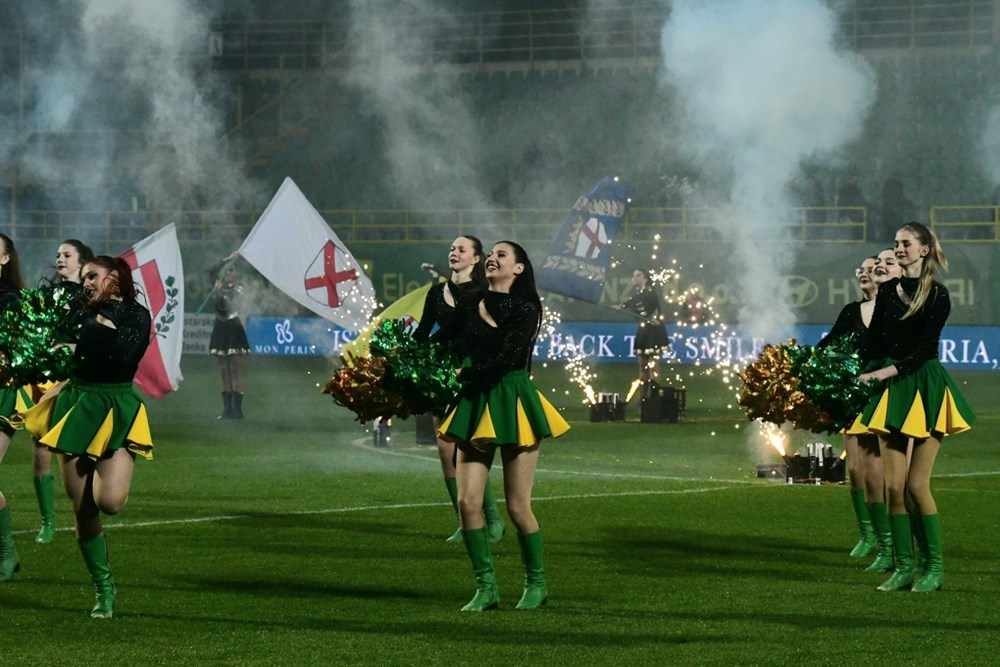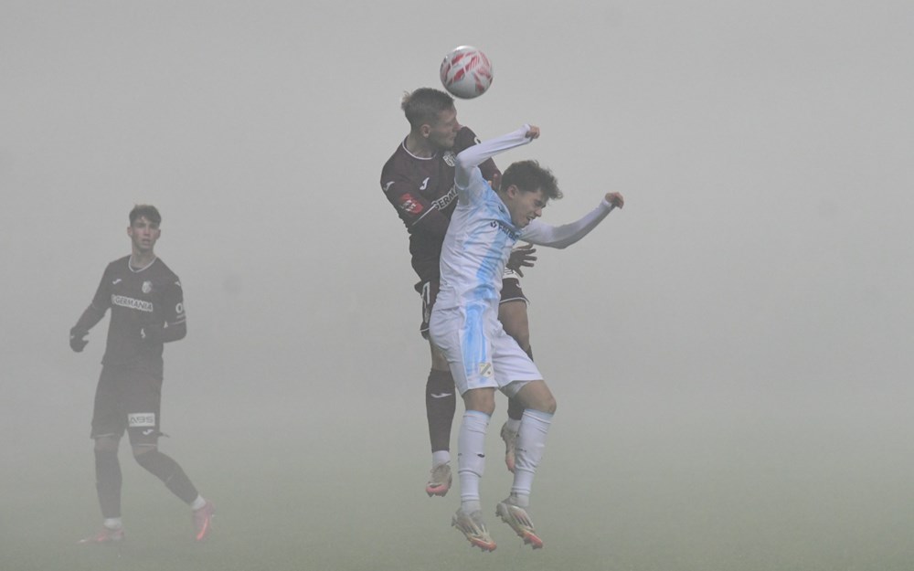 Na žalost, nakon što se dim razišao, pojačala je magla i sad se sa zapadne tribine može samo nagađati gdje se nalazi gostujući gol.