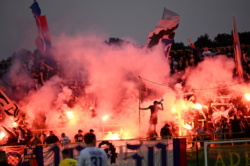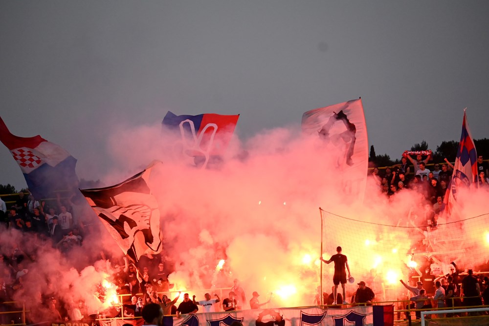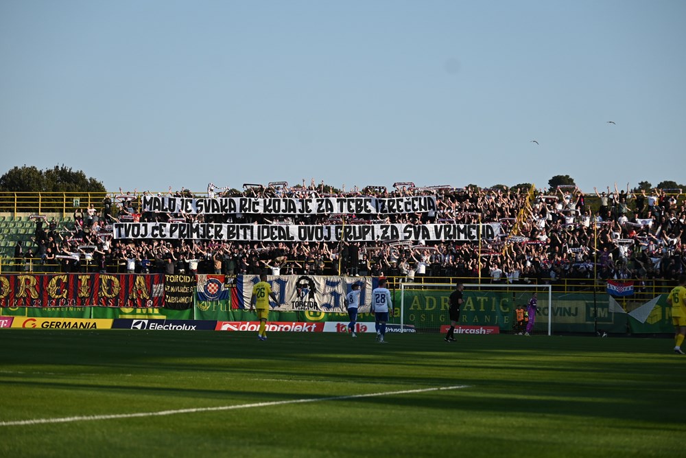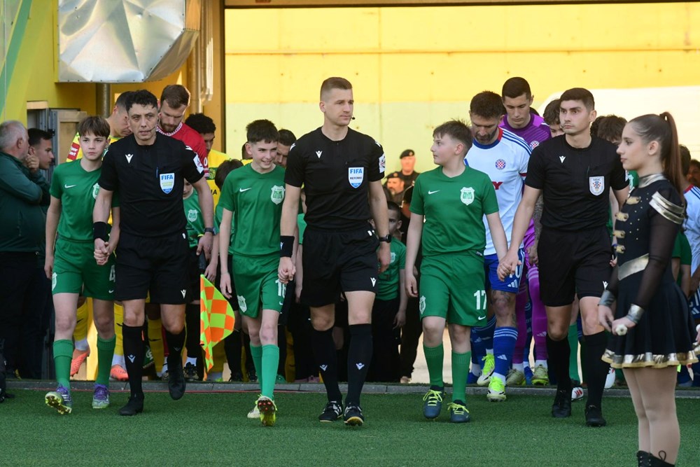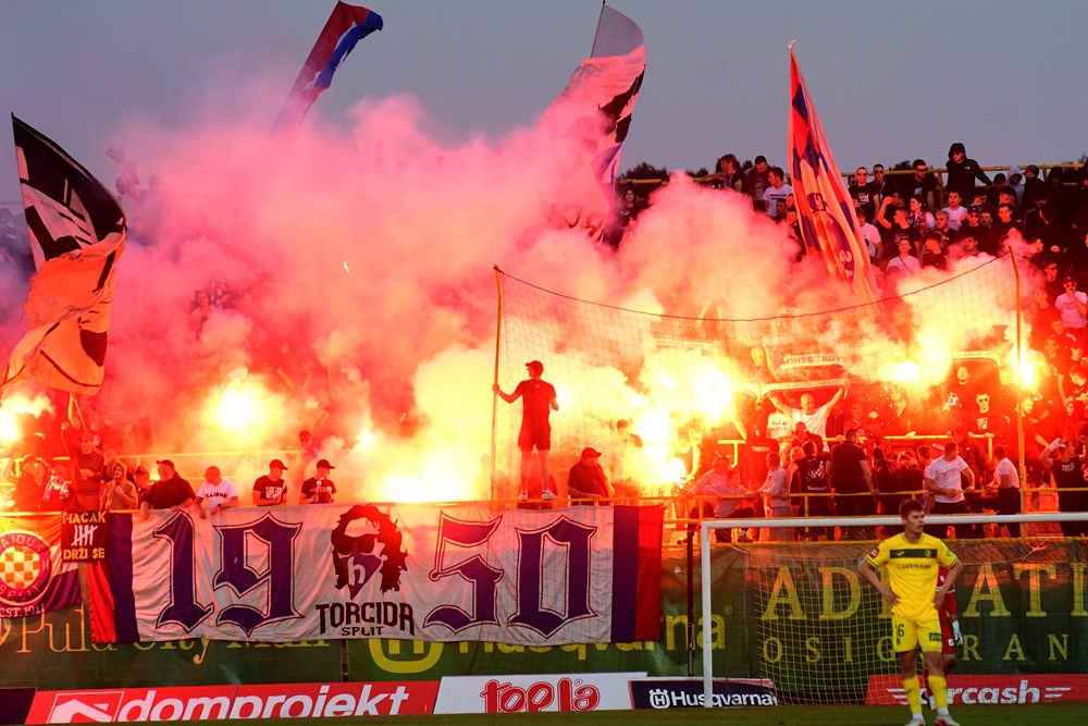 Nakon vatrometa i nastupa mažoretkinja, pred dobro ispunjenim tribinama Alda Drosine sudac Mateo Erceg dao je znak za početak susreta između Istre 1961 i Hajduka