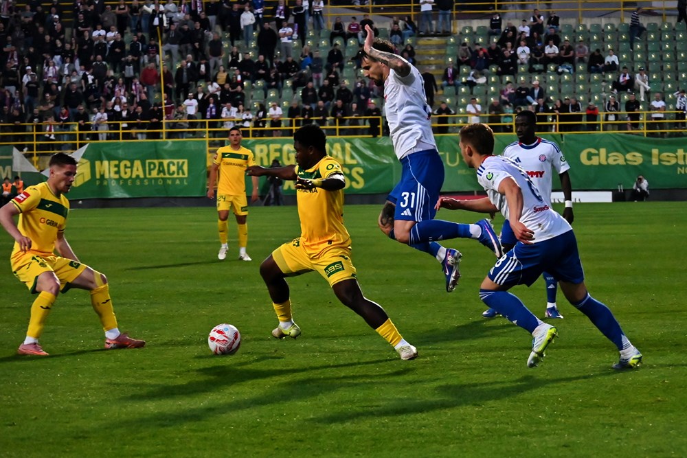 21' Glasni protesti pulskih navijača jer je Nasraoui ostao na zemlji nakon starta Livaje. No, sudac Erceg ovog puta nije posegnuo za kartonom