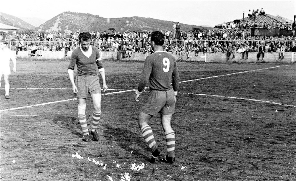 Legendarni Aldo Drosina i pulski centarfor Bakotić prije utakmice s Orijentom na Krimeji