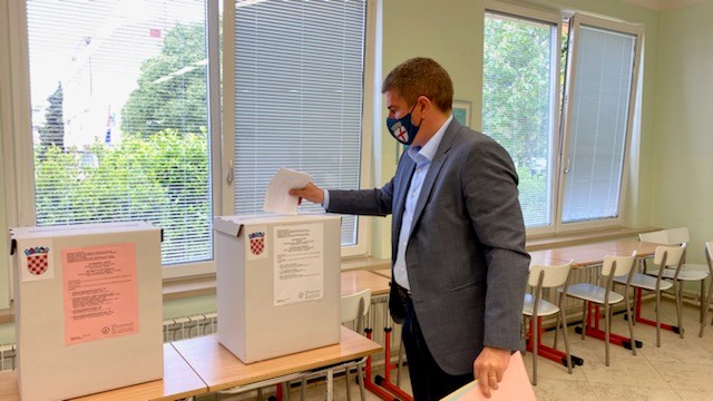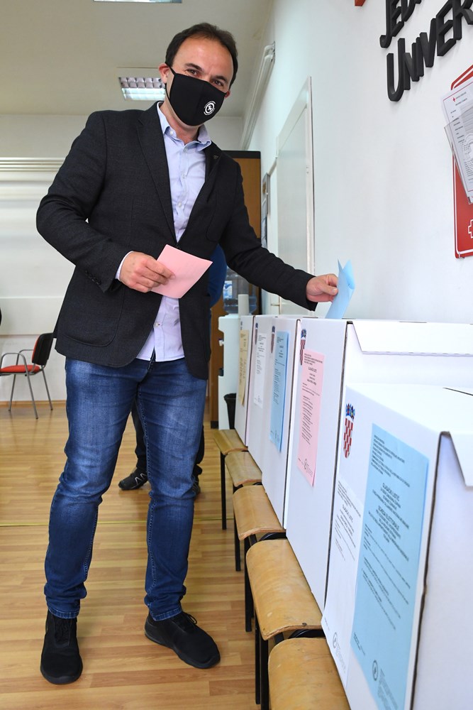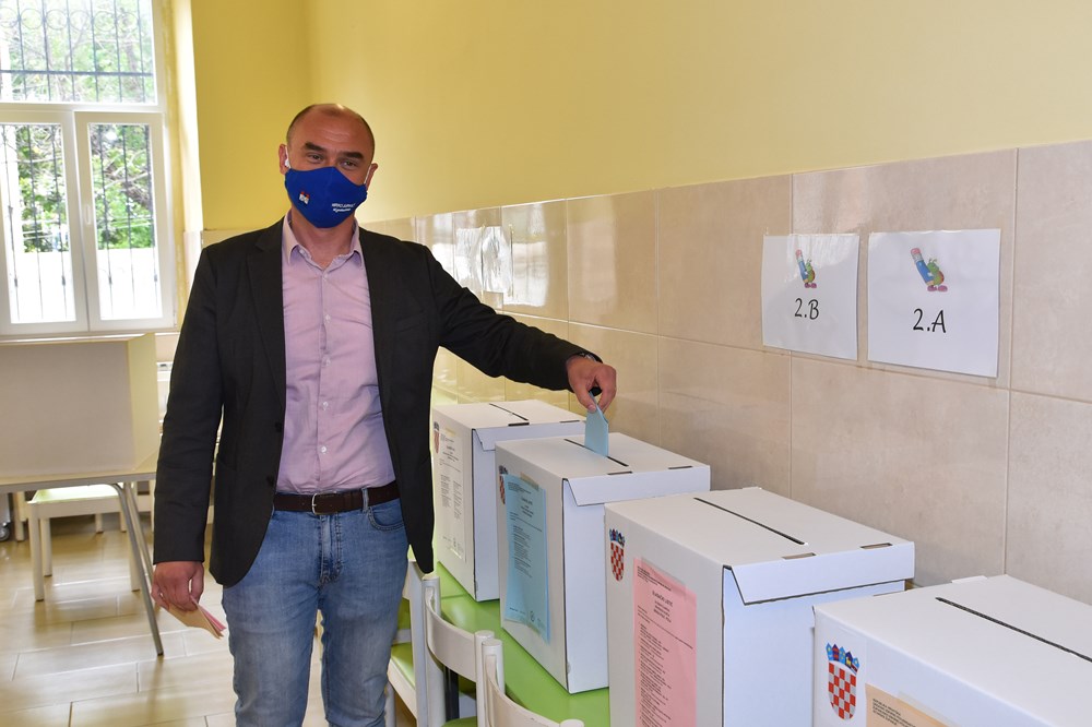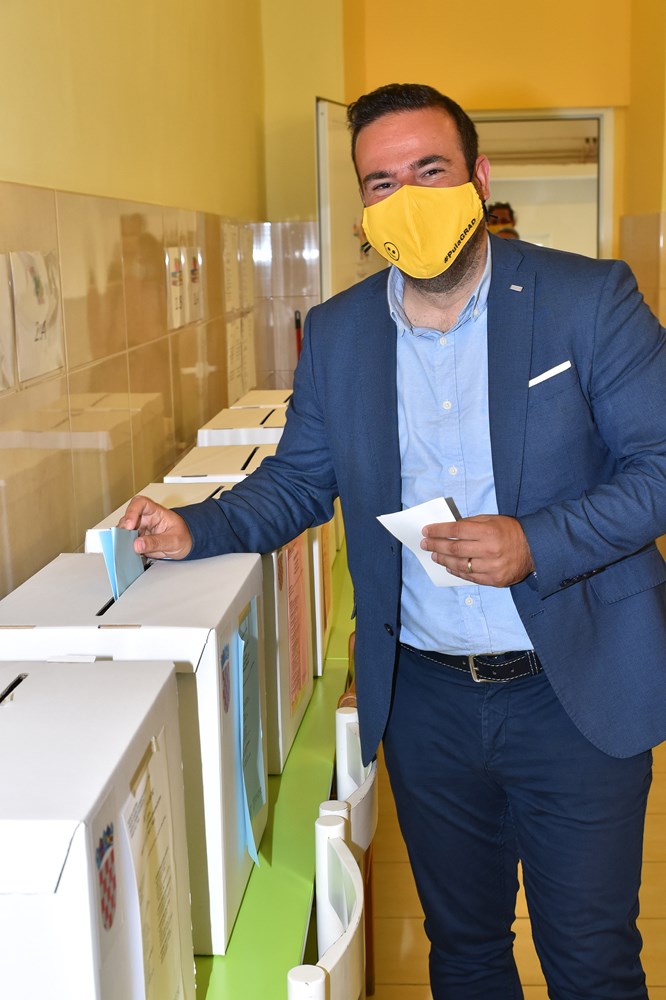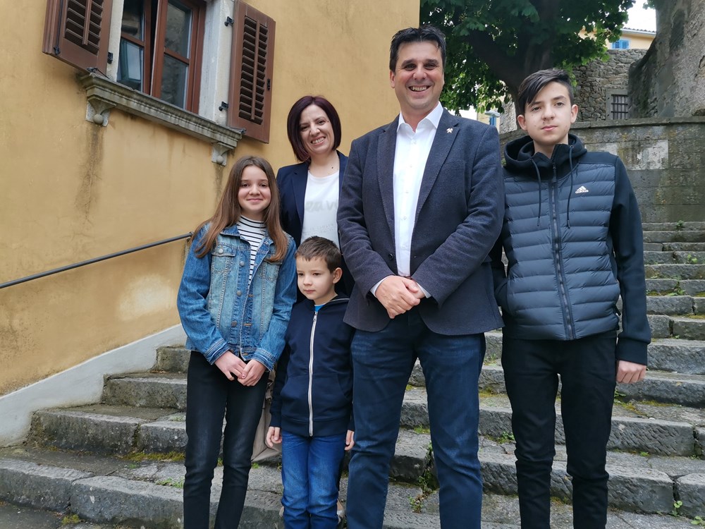 Valter Glavičić (IDS), kandidat za gradonačelnika Labina, na glasanje je došao s cijelom obitelji (Snimio Branko Biočić)
