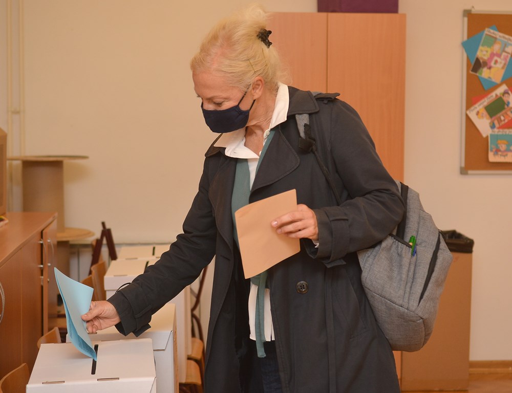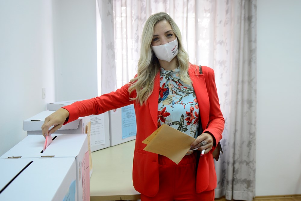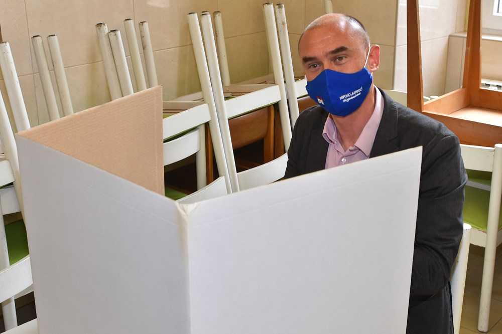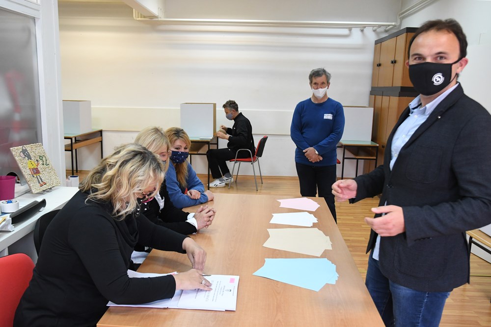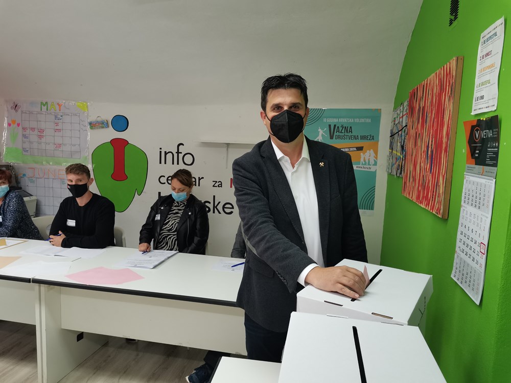 Valter Glavičić (IDS), kandidat za gradonačelnika Labina, na glasanje je došao s cijelom obitelji (Snimio Branko Biočić)