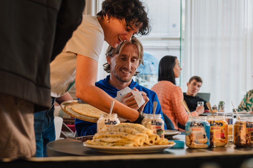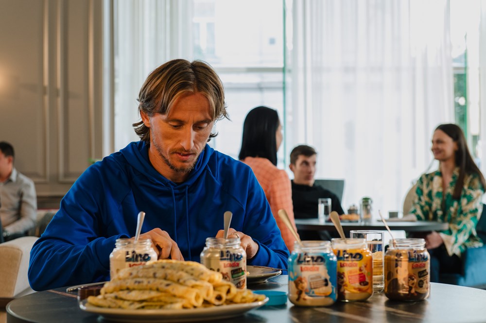 Sasvim obično jutro u Hotelu Sheraton prekinuo je jedan neočekivani gost. Najbolji vezni igrač na svijetu Luka Modrić ležerno je izašao iz dizala i iste sekunde privukao pozornost svih prisutnih. Čak je i grupa stranih turista na recepciji odmah prepoznala našeg kapetana. Nisu stigli ni izvaditi svoje mobitele, a Luka je već bio na setu, spreman za snimanje TV reklame za Lino Ladu Gold Creamy. Logičan odabir brend ambasadora od strane Podravke jer tko će bolje prezentirati Lino Ladu Gold Creamy, nego osvajač Zlatne lopte koji inače obožava palačinke s Lino Ladom. U to smo se uvjerili i sami kad se zadnja scena snimala nekoliko puta, a Luka je baš svaki put guštao u novoj palačinki ispunjenoj Lino Ladom. Za njega na snimanju nije bilo praznog hoda. Dok je ekipa namještala rasvjetu, on je koristio svaku pauzu za davanje autograma i potpisivanje hrpe sponzorskih dresova.