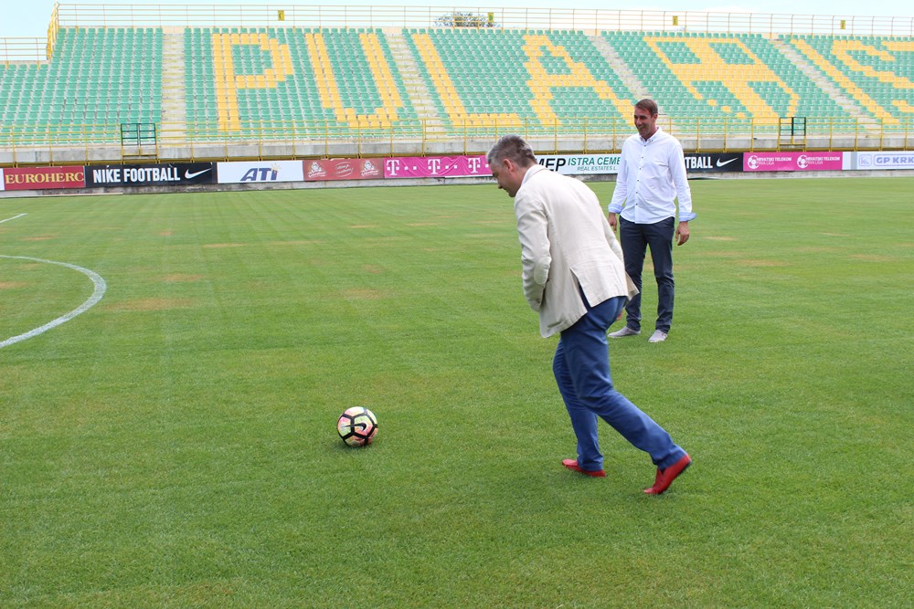 - Cilj Grada Pule je kontinuirano ulaganje u sportsku infrastrukturu. Zgotovljen stadion, sada s kvalitetnim travnjakom, a uskoro i zgotovljen kompleks gradskih bazena, pokazuju da sve više ulažemo u ovaj segment, važan ne samo za širu zajednicu već i gospodarstvo, rekao je tom prigodom Miletić.