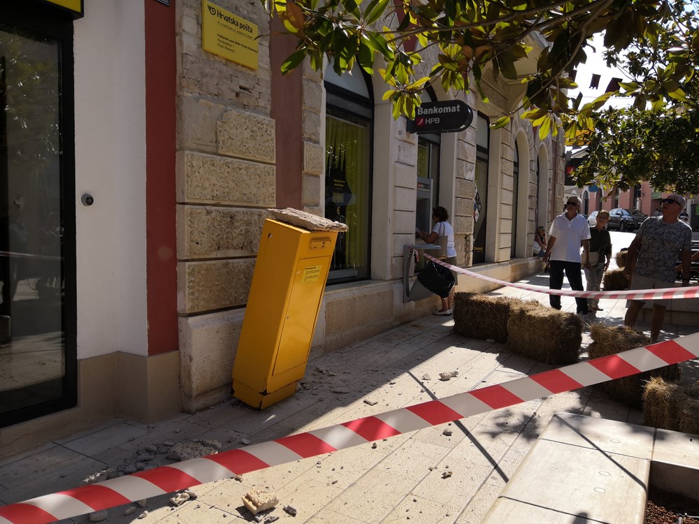Prava je sreća da nitko nije stradao jutros u Poreču na Trgu slobode kad se iznenada urušio dio fasade na zgradi pošte. Dok je trg bio prepun ljudi zbog održavanja povijesnog festivala Giostra očevici koji su se zatekli u blizini pošte kazali su nam da su čuli strašnu buku i zatim vidjeli komade kako se urušavaju. Jedan poveći komad pao je baš na poštanski sandučić koji se od udarca pomaknuo s mjesta.