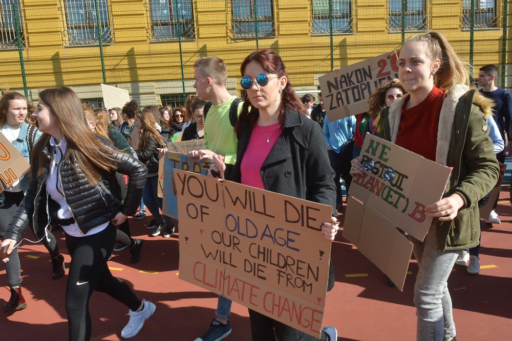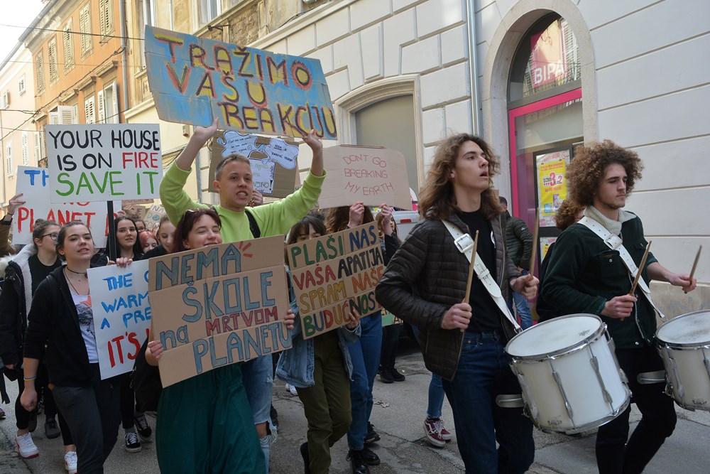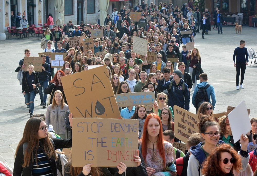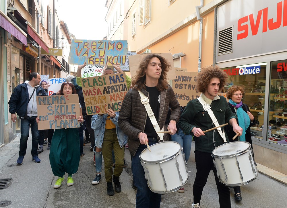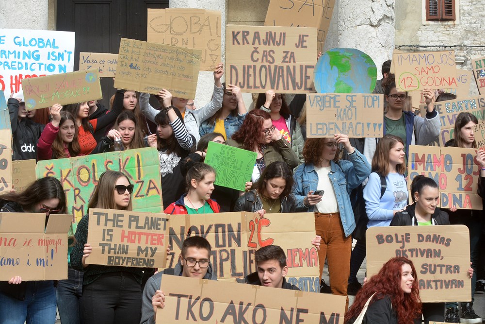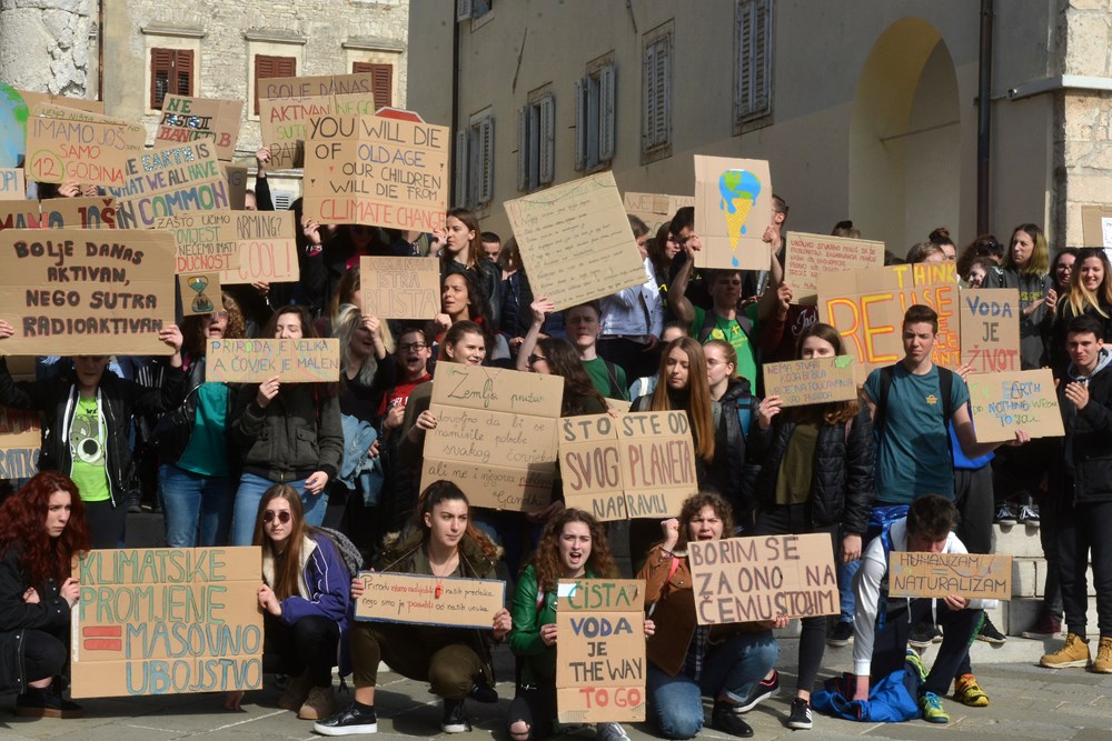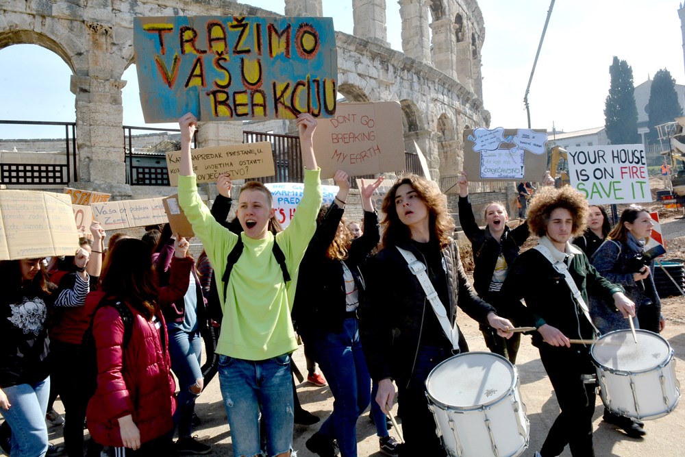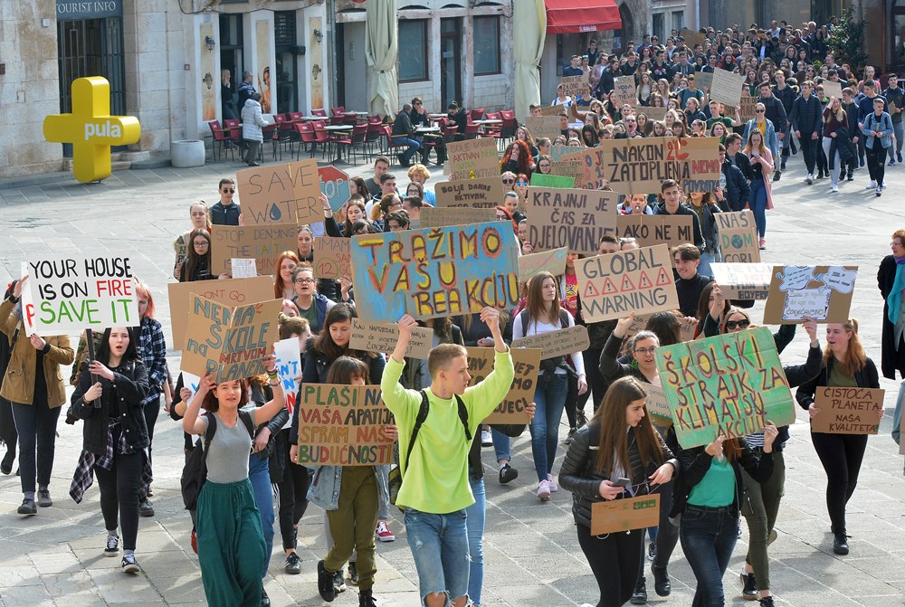Na poticaj pulske gimnazijalke Dore Macuka, članice školskih grupa Socijalne ekologije/Lumena i Eko-škole, danas su gimnazijalci prošetali od igrališta škole preko Portarate i Foruma do Arene i sjedišta Istarske županije te time odaslali apel političarima da ozbiljno shvate klimatske promjene i njihovu budućnost. Svoje su pismo predali zamjeniku župana Fabriziju Radinu. Podrška je to inicijativi Grete Thunberg iz Švedske koja svaki petak štrajka ispred svoje Vlade tražeći konkretnije akcije za spas klime.