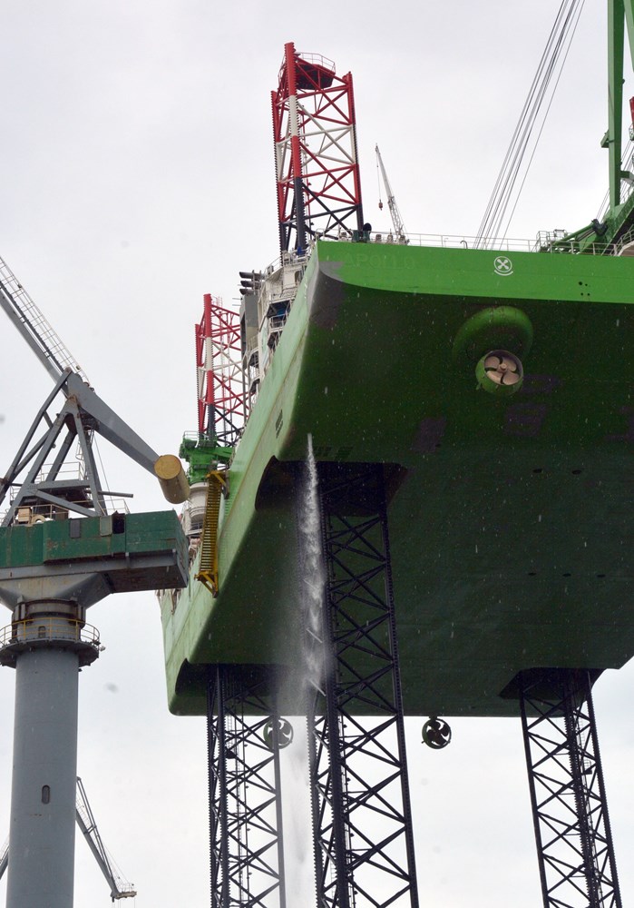 Upravo su “noge“ platforme Apollo, koje su u potpunosti izrađene u Uljaniku, bile izuzetno zahtjevan tehnološki zadatak s obzirom na specifičnu pripremu i tehnologiju zavarivanja. U narednim danima slijede daljnja testiranja i to rada sustava dizalice na visini, pod opterećenjima između 500 - 800 tona. (M. PAVLOVIĆ, snimio Neven LAZAREVIĆ)