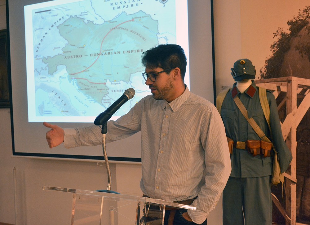 - Ovim predavanjem ću na neki način spojiti povijest i zemljopis, prikazavši put mobiliziranih Istrana te kako su se linije pomicale, kazao je iznoseći brojne povijesne činjenice te detalje istraživanja vezano uz sudbine malih, običnih ljudi, govoreći o nekim pojedinostima sudbina do kojih je uspio doći. Kazao je da se na Slavene nerijetko gledalo kao na saveznike, dok se druge zarobljenike željelo kažnjavati, a iznio je i nekoliko podataka vezano uz dopisivanje iz logora u logor, primjerom Antonia Demarina koji šalje dopisnicu supruzi Pasqui, iz jednog logora u drugi.