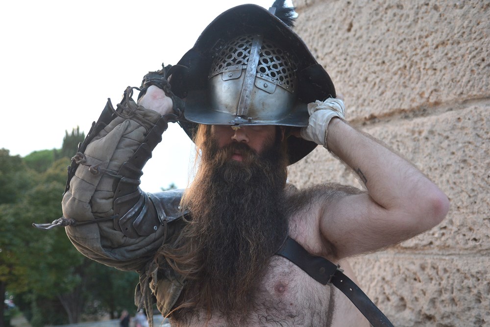 "Uvijek sam volio povijest. Borba pred publikom u amfiteatru je poseban gušt. Cijeli doživljaj je posebno lijep. Mogu se uživjeti u ulogu, ući u personu. Dlakav sam pa imam latinski naziv za medvjeda, a to je ursus", objašnjava nam 24-godišnji Mladen Orlandini iz Labina dok oblači svoj kostim za još jednu noć gladijatora u pulskoj Areni.