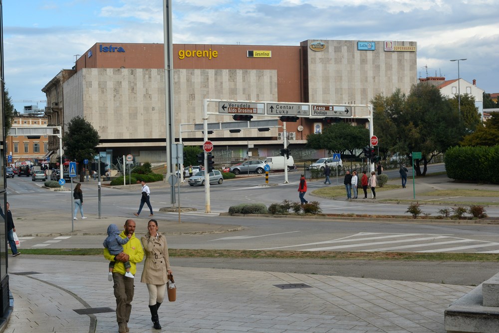 "Hvala i doviđenja", crvenim slovima vrišti natpis na žutoj pozadini sa znakom Puljanke na ulazu u bivšu Robnu kuću Pula. Iako je nekada bila mjesto gdje se moglo naći sve od "igle do lokomotive" ili, ako ćemo preciznije, od hrane, preko igračaka, odjeće, do namještaja, već neko vrijeme ta zgrada zjapi prazna. Dakle, samo nekoliko koraka dalje od zelene tržnice, žile kucavice grada, slijedi ogromna arhitektonska lešina koja bi, prema riječima vlasnika, trebala postati luksuzni hotel u centru grada.