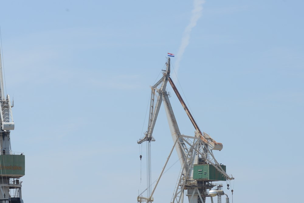Nakon spektakularne utakmice Hrvatske i Engleske gdje su hrvatski reprezentativci sjajnom igrom osigurali našoj zemlji prolaz u finale, navijači sve vatrenije bodre naše nogometaše. A jedan takav primjer zabilježio je naš fotoreporter Dejan Štifanić - naime, zasad nepoznati hrvatski navijač okačio je hrvatsku zastavu na vrh dizalice u Uljanikovom brodogradilištu. (GI)