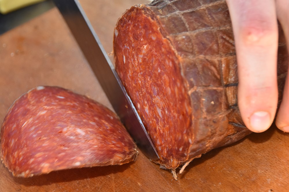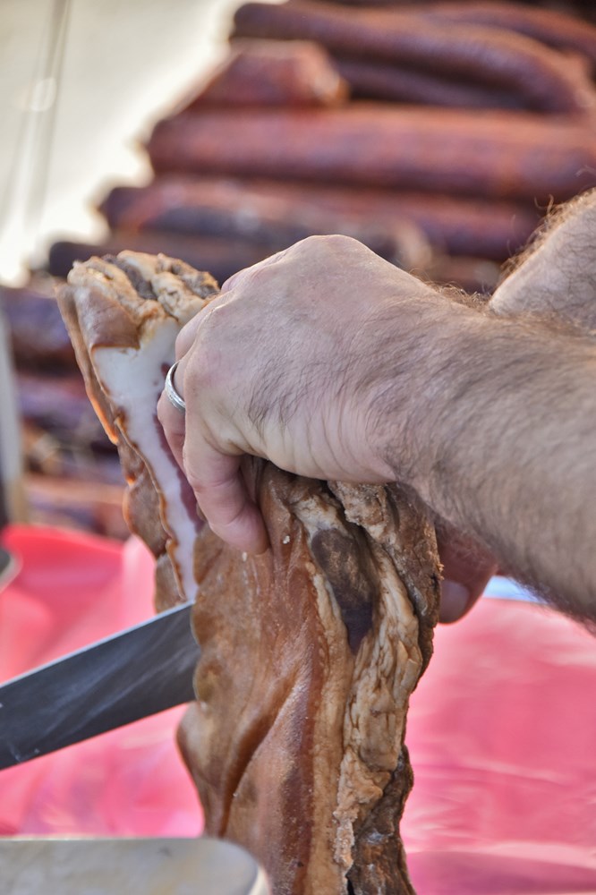"U nju ide srca, jezici, kožica sa obraza, kožice za povezivanje i začini", priča Baotić. Doznajemo da nemaju dovoljno crijeva jer i slavonske poduzetnike muči kronični hrvatski problem - nedostatak radne snage. Kilogram "nemasnih", ocijeđenih prešanih čvaraka stoji 150 kuna, dok su klasični 120 kuna. Kilogram pak svinjske masti košta 20 kuna. Pitamo je li istina da je sve veća potražnja za mašću. "Normalno kada je poskupilo ulje, pa im je sada dobra i mast", šali se.