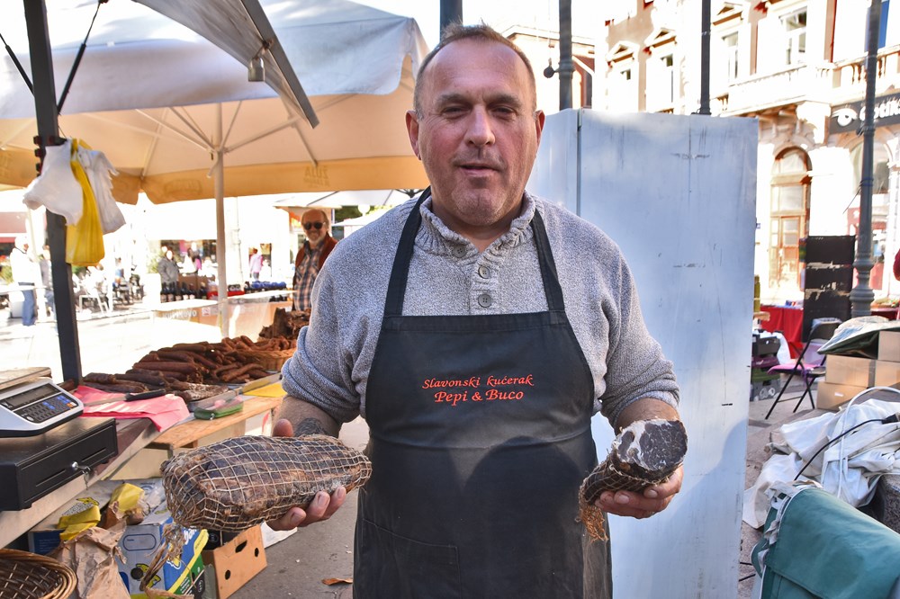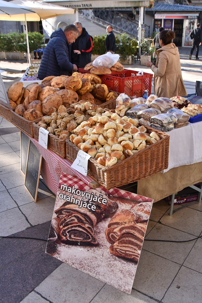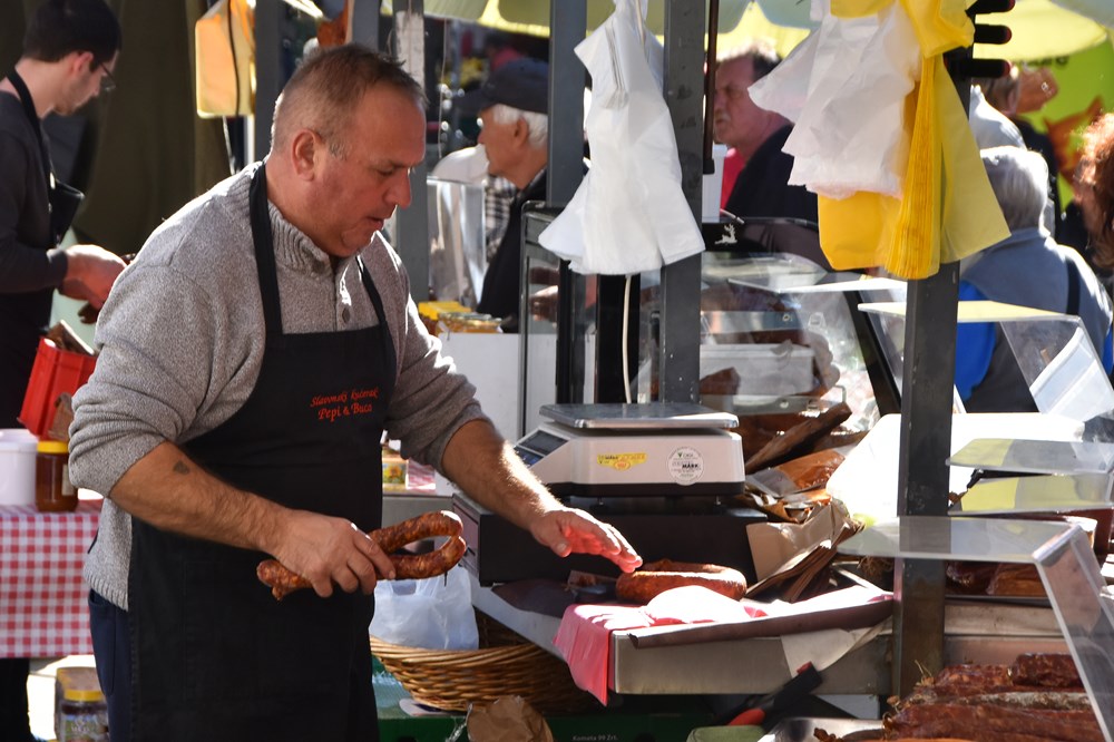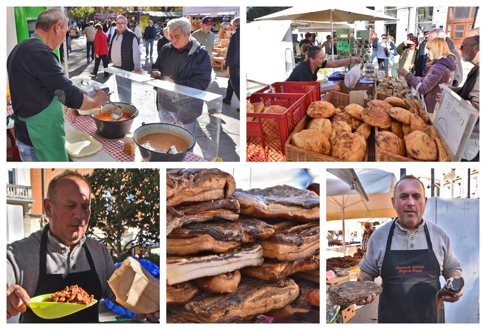 Na štandovima se prodaje domaće voće i povrće. Travar ima široki spektar prirodnih čajeva po 50 kuna i raznoraznih tinktura. Bučino ulje i bučine sjemenke. U pekarskom djelu pažnju privlači domaći kruh bez aditiva, kao i pogačice s čvarcima i kiflice, dok su makovnjača i orehnjača, provjereni slastičarski klasici, po 50 kuna.