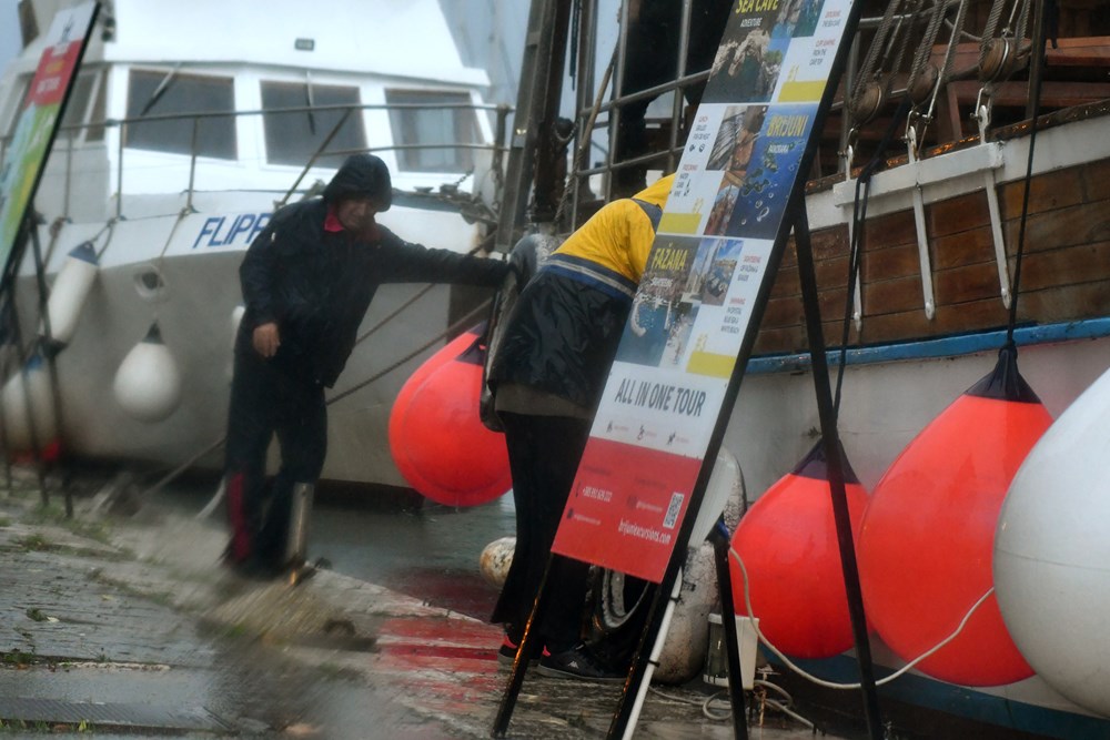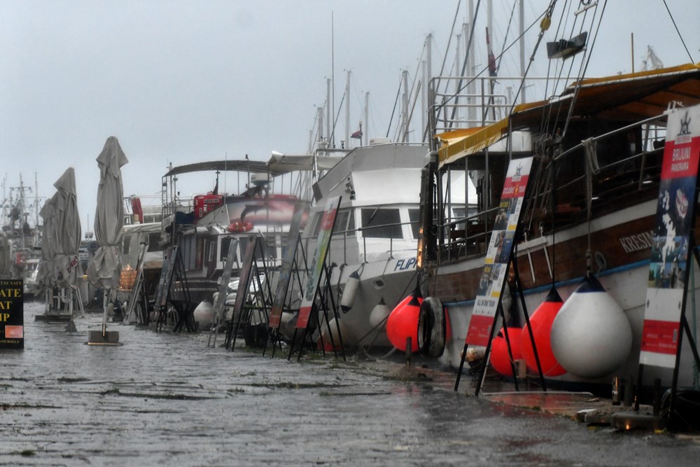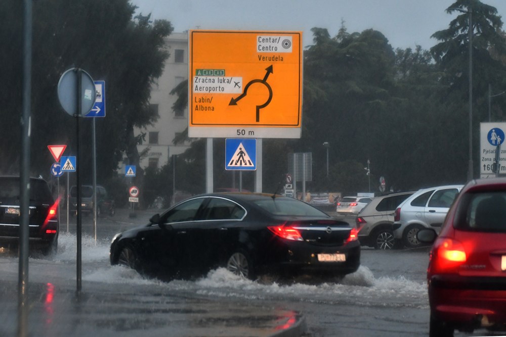 Državni hidrometeorološki zavod za područje sjevernog Jadrana najavio je crveni alarm, uz jaku kišu i olujno jugo, a u Puli je palo otprilike 11 milimetara kiše po četvornom metru.