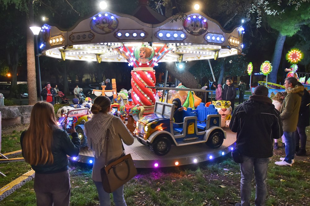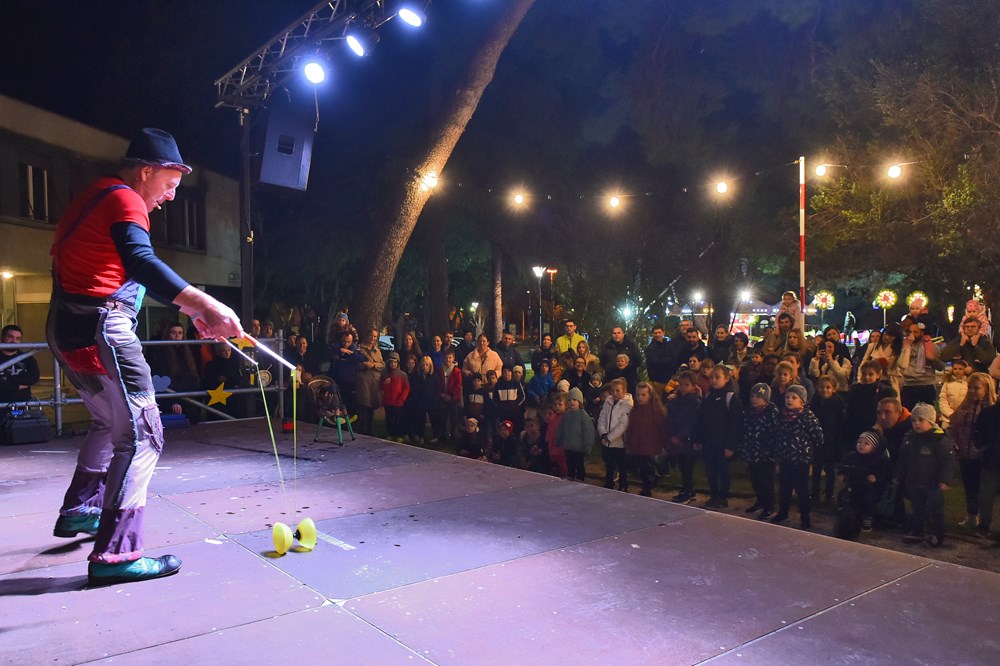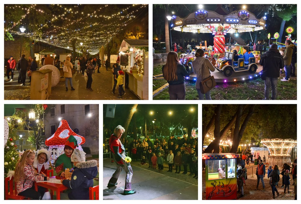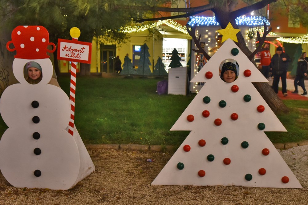 Nakon duge i zamorne ljetne sezone, Puležani će od odsad pa sve do 8. siječnja moći uživati u čarima Adventa u Puli * Na početku večernjeg programa jučer je najživlje bilo u Parku grada Graza gdje je sve prilagođeno najmlađima. Tu su vrtuljci, trampolini i vlakići, a djecu i roditelje pošteno su nasmijale Marekove Cirkusarije u izvedbi počasnog člana udruge Čarobnjakov šešir i majstora improvizacije - Omara Ivančića