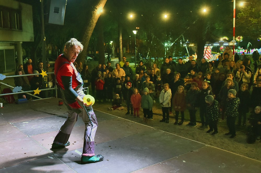 Na istoj lokaciji, prilagođenoj najmlađima, danas su uz vrtuljke, trampoline i vlakiće, djecu i roditelje pošteno nasmijale Marekove Cirkusarije u izvedbi počasnog člana udruge Čarobnjakov šešir i majstora improvizacije - Omara Ivančića. Tamo se okupilo najviše ljudi, barem na početku današnjeg večernjeg dijela Adventa u Puli, a redovi za slastice bili su, očekivano, dugi i puni nestrpljivih mališana.