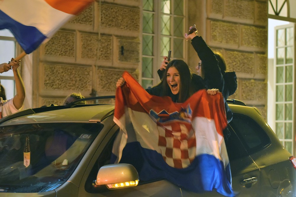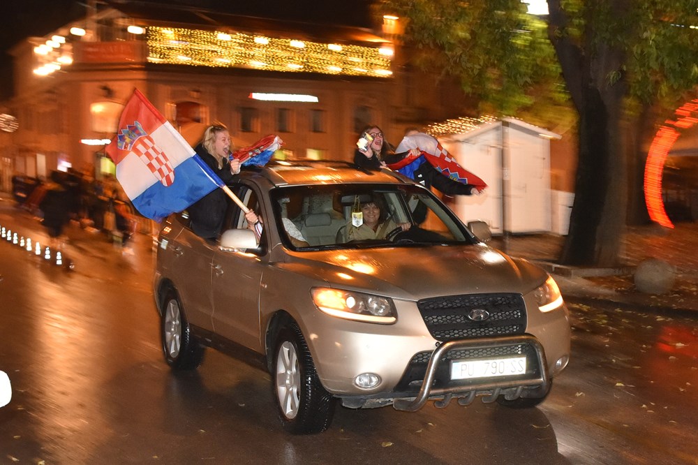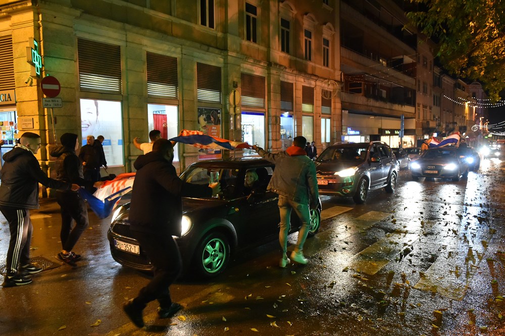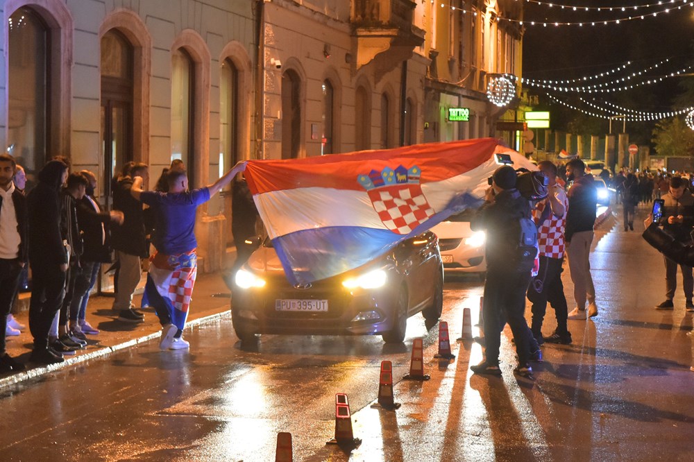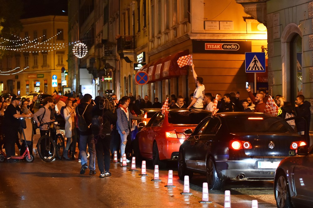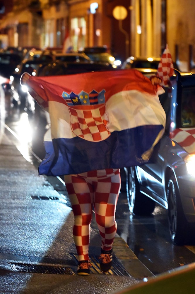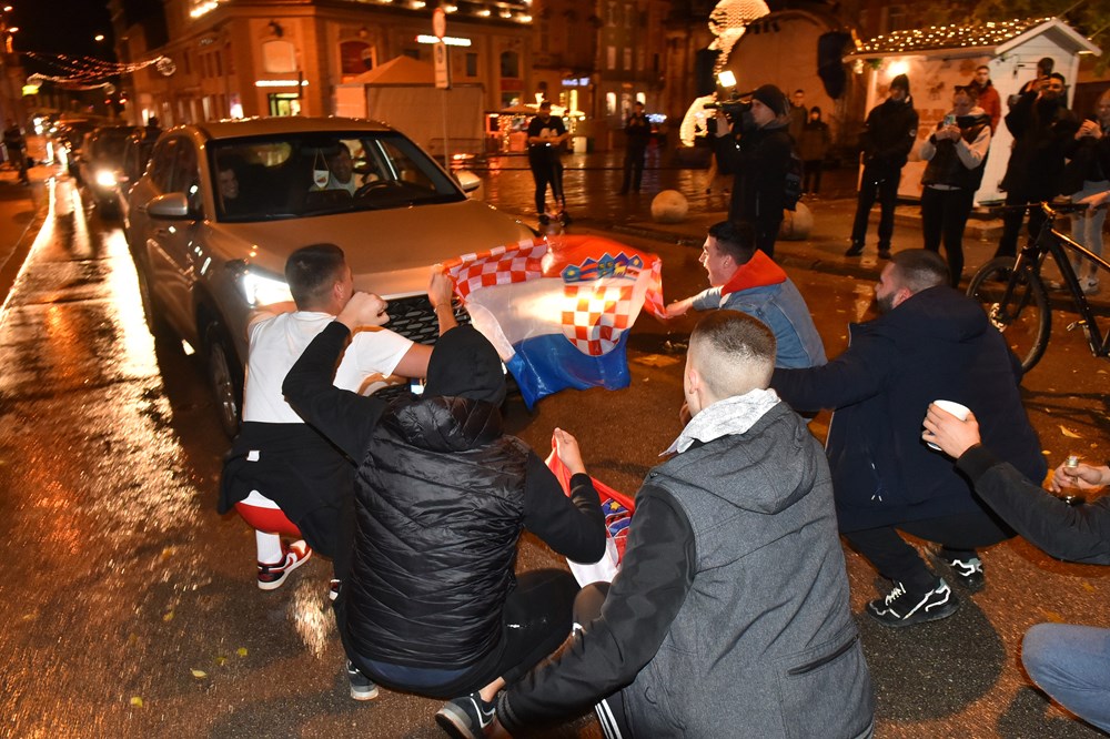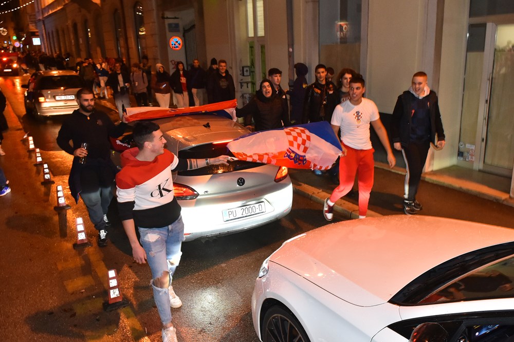 Hrvatski nogometaši razveselili su brojne navijače koji su pohitali podijeliti svoje veselje na ulicama grada. Pjevalo se, trubilo sirenama, mahalo zastavama…