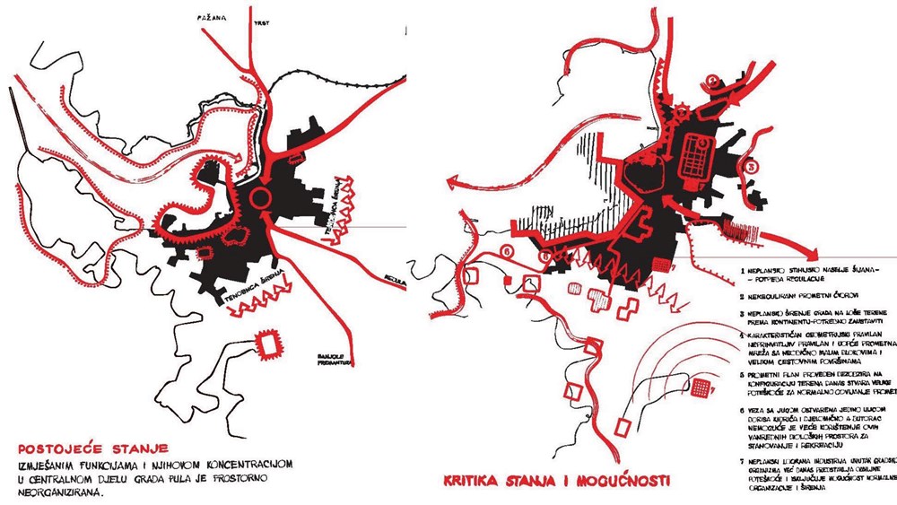 Radikalan skok uslijedio je krajem 50-ih u industrijskom zamahu i uz strateške ciljeve vojske, kada se stvorila i potreba za planom. Pula je 1962. među prvim gradovima u Hrvatskoj dobila UPU, iako se on počeo izrađivati gotovo deset godina prije, 1953. Bio je to, pojasnio je Jurcan, svojevrstan eksperiment za urbanističku praksu u Hrvatskoj. Realizirao ga je tada novoosnovani Urbanistički institut SR Hrvatske, a autor je bio arhitekt Radovan Miščević. Prethodna planska dokumentacija nije postojala, a ovim je planom, kroz analizu stanja Pule, detektirana preopterećenost centra grada te je utvrđeno da je izrazito centraliziran prema vodozaštitnom području i plodnoj zemlji.