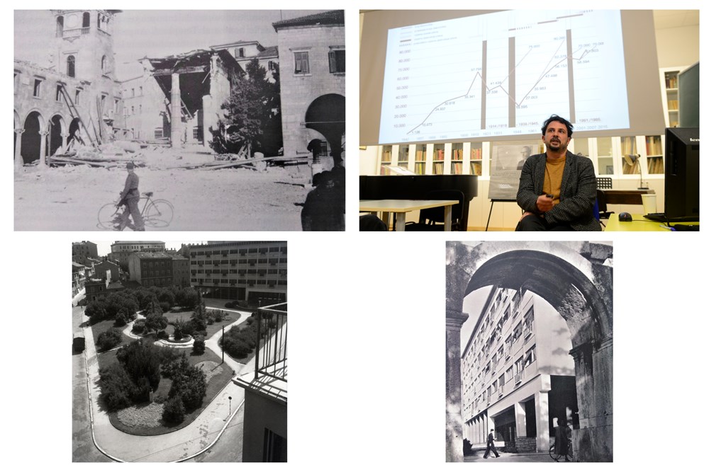 Početkom 50-ih počinje prva faza razvoja i promjene morfologije grada. Uklanjaju se ruševine nakon savezničkog bombardiranja, a kao jedna od prvih intervencija poslijeratnog uređenja grada bilo je parkovno uređenje. Kako je pojasnio Jurcan, novi parkovi kao javni prostori uređivani su sa svrhom razrjeđivanja strukture povijesnog dijela grada, koja se poklopila i s velikom depopulacijom (egzodusom 1947.).