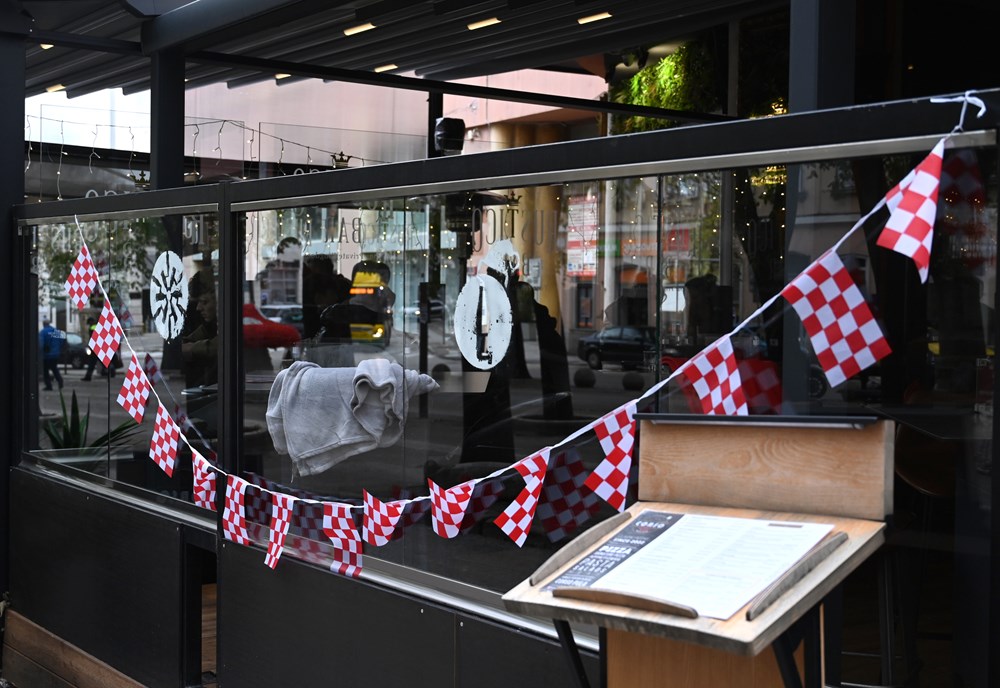 Sve je spremno i u Old Cityju na Danteovom trgu - neki od stolova rezervirani su još u petak po završetku utakmice s Brazilom, a jednako je tako i u Corsu na Giardinima.