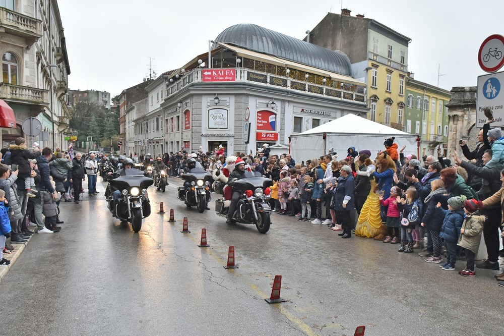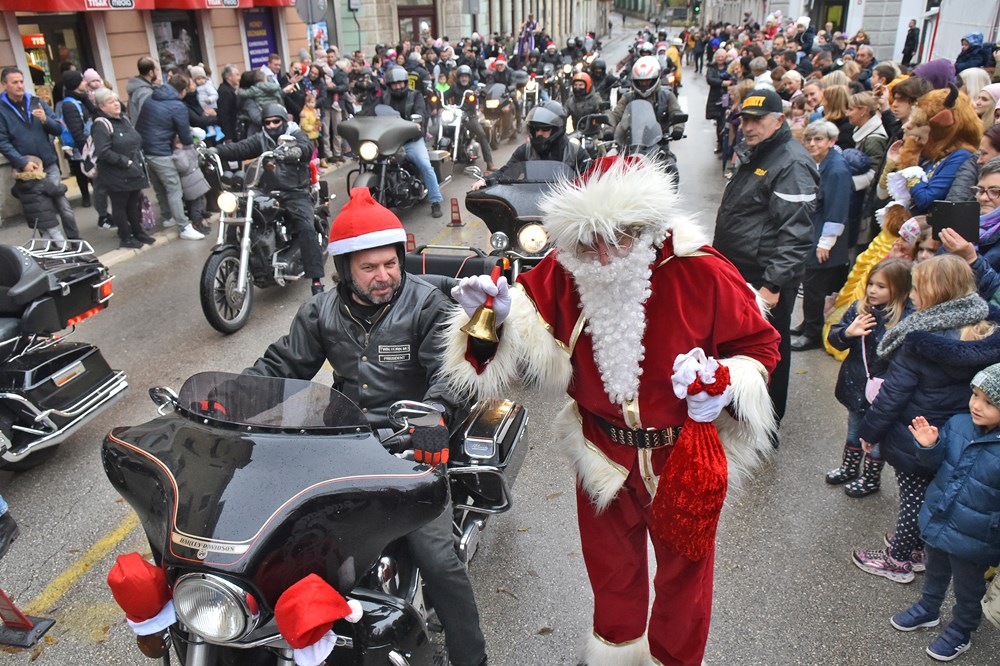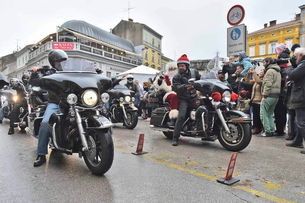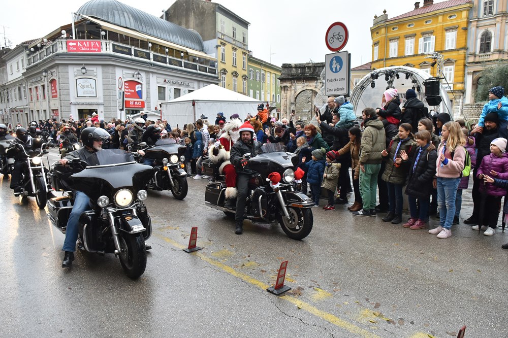 Danas je na pulsku Portaratu tradicionalno stigao Djed Mraz u pratnji 40-tak motorista Moto kluba Twin Horn MC u suradnji s Javnom ustanovom Pula film festival. Pulski su bajkeri tako doveli Djedicu, a roditelji djecu ne bi li im uljepšali subotnje jutro uz pokoji slatkiš. Portarata je, unatoč sivom vremenu i prijetećoj kiši, bila prepuna ljudi, a zvuk dječjeg klicanja nadjačala je jedino grmljavina pulskih motorista.