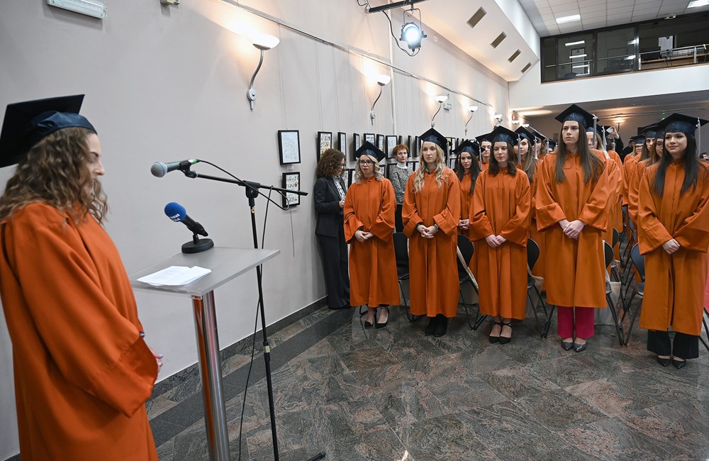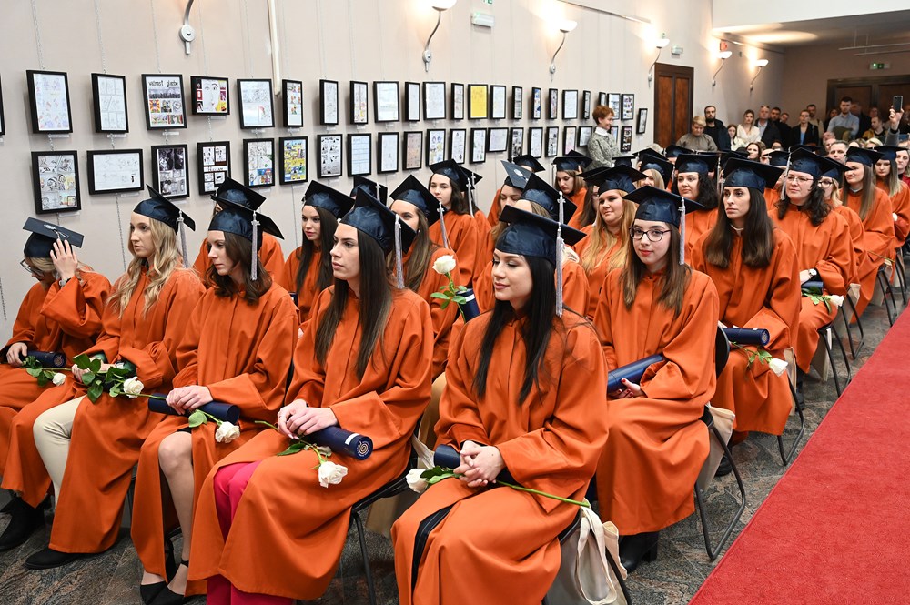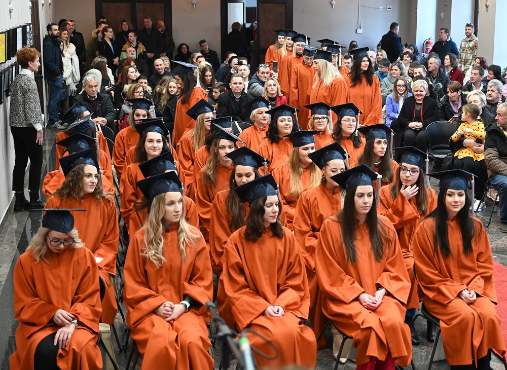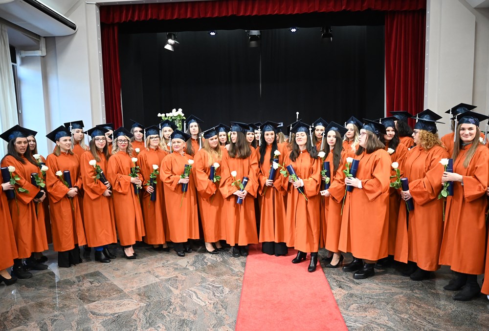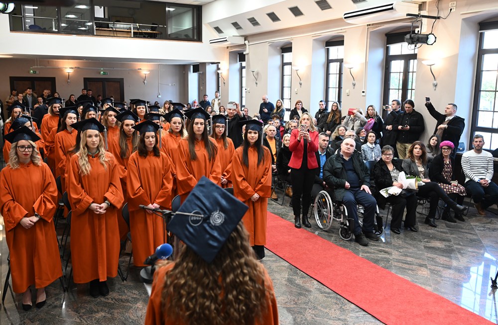 Brojnim diplomantima, koje su danas, uz osmijeh na licu, krasile svečane akademske odore i prepoznatljive kape, s prigodnim se riječima i čestitkama obratila dekanica prof. dr. sc. Iva Blažević.