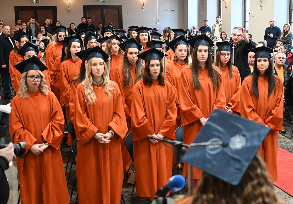 Akademska zajednica od danas je brojnija za 82 nova člana koji su na jutrošnjoj svečanosti, pred prepunom salom pulske Zajednice Talijana, primili svoje diplome. Završetak svog višegodišnjeg obrazovnog puta na Fakultetu za odgojne i obrazovne znanosti Sveučilišta Jurja Dobrile u Puli, na današnjoj su promociji obilježili diplomanti koji su studij završili u razdoblju od listopada 2021. do prosinca 2022. godine. Prijediplomski stručni studij Predškolski odgoj na hrvatskom ili talijanskom jeziku završilo je 35 diplomanata, prijediplomski sveučilišni studij Rani i predškolski odgoj i obrazovanje na hrvatskom jeziku završilo ih je 38, dok je njih 9 završilo integrirani prijediplomski i diplomski sveučilišni Učiteljski studij na hrvatskom ili talijanskom jeziku.