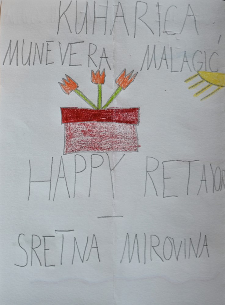 Punih 37 godina, cijeli svoj radni vijek, odradila je u OŠ Stoja, trenutno koristi godišnji odmor, a u mirovinu službeno kreće u ožujku, dan nakon svog 65 rođendana. Ona je Munevera Malagić i bila je kuharica ove škole, punih 28 godina, nakon što je prvih devet radila na istom mjestu kao spremačica.