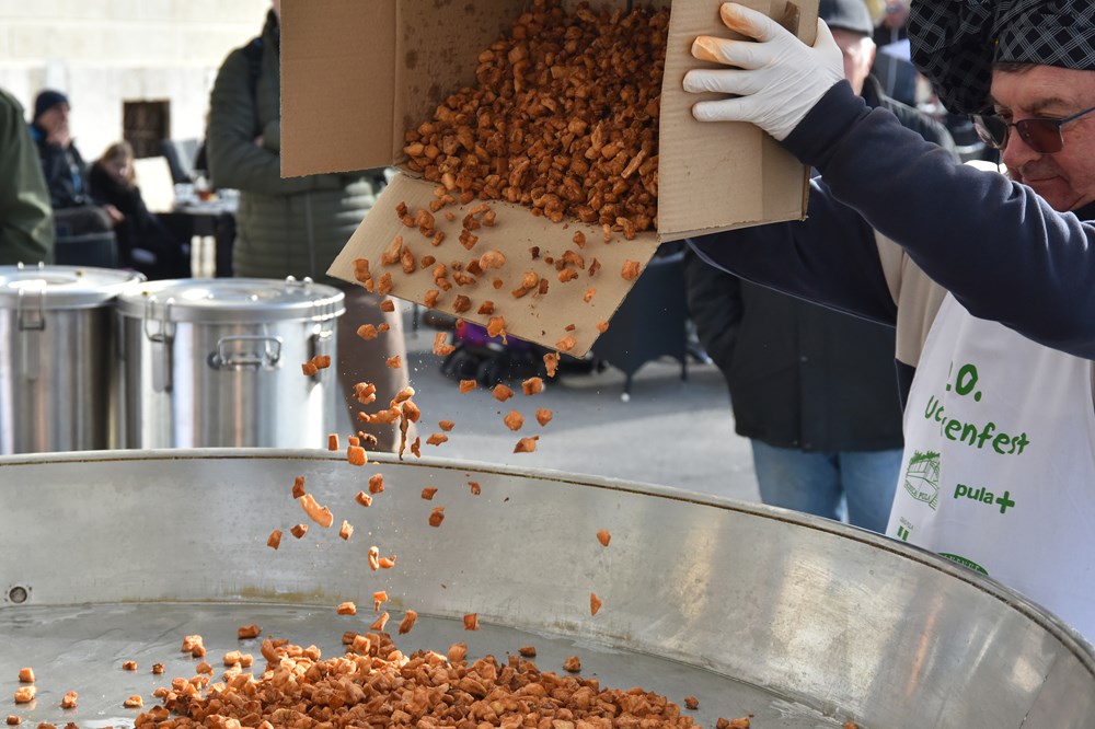 - Koristili smo jedno 35-40 kila krumpira i isto toliko skuhanog i speštanog zelja. Bacili smo to preko čvaraka koje smo ranije zagrijali na maslinovom ulju s malo češnjaka. I kad se sve to promiješa, to je to! Besplatno se dijeli kao i uvijek, rekao nam je Žižović pa dodao da je to dvadeseta godina da se održava ovaj festival, uz dvogodišnju pauzu zbog korone. "Nadam se da će biti još bar dvadesetak!"- poručio je Žižović.