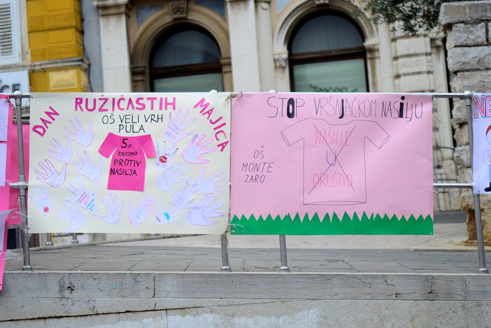 U organizaciji Policijske uprave istarske i Grada Pule, i ove se godine na prigodan način obilježio Nacionalni dan borbe protiv nasilja nad vršnjacima, a sve je počelo 2007. godine kada su srednjoškolca u gradu Berwick u Kanadi, vršnjaci maltretirali jer je u školu došao u ružičastoj majici, koju je obukao kako bi dao podršku svojoj bolesnoj majci. Nekoliko dana kasnije, njegovi prijatelji također su došli u školu u ružičastim majicama, kupili ih još 50-tak i dijelili drugim mladićima, a uskoro je ova poruka poprimila gotovo globalni karakter.