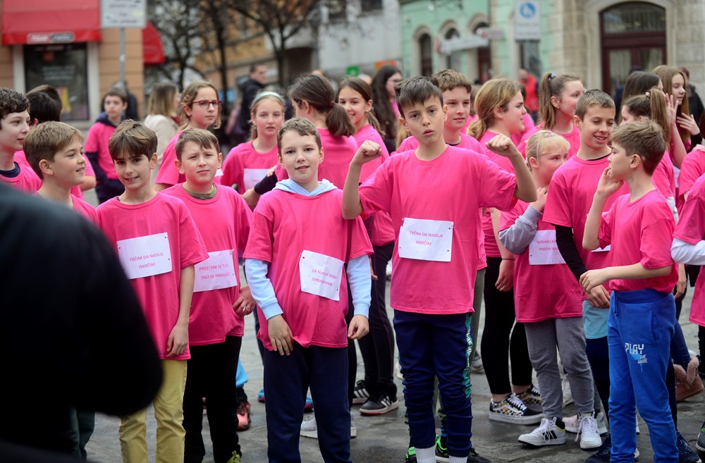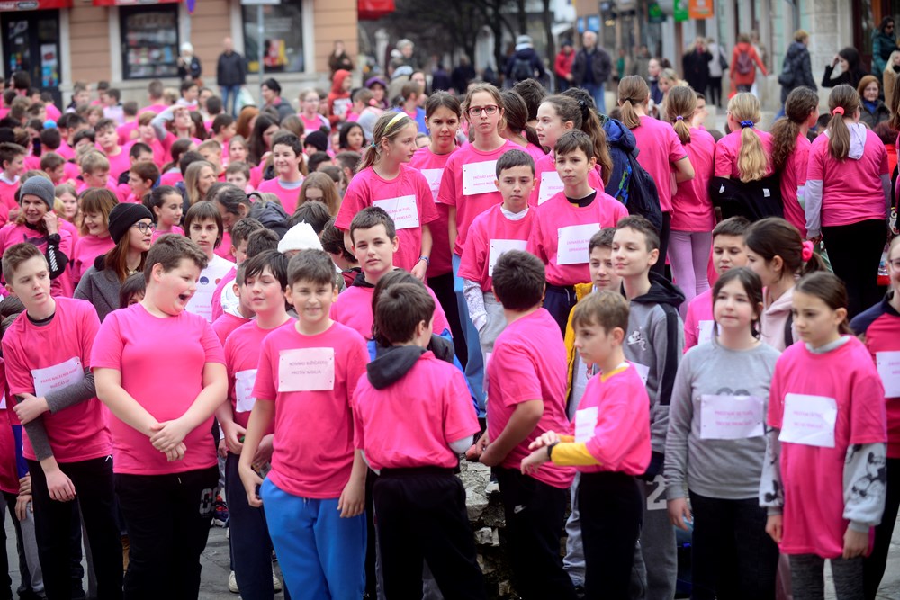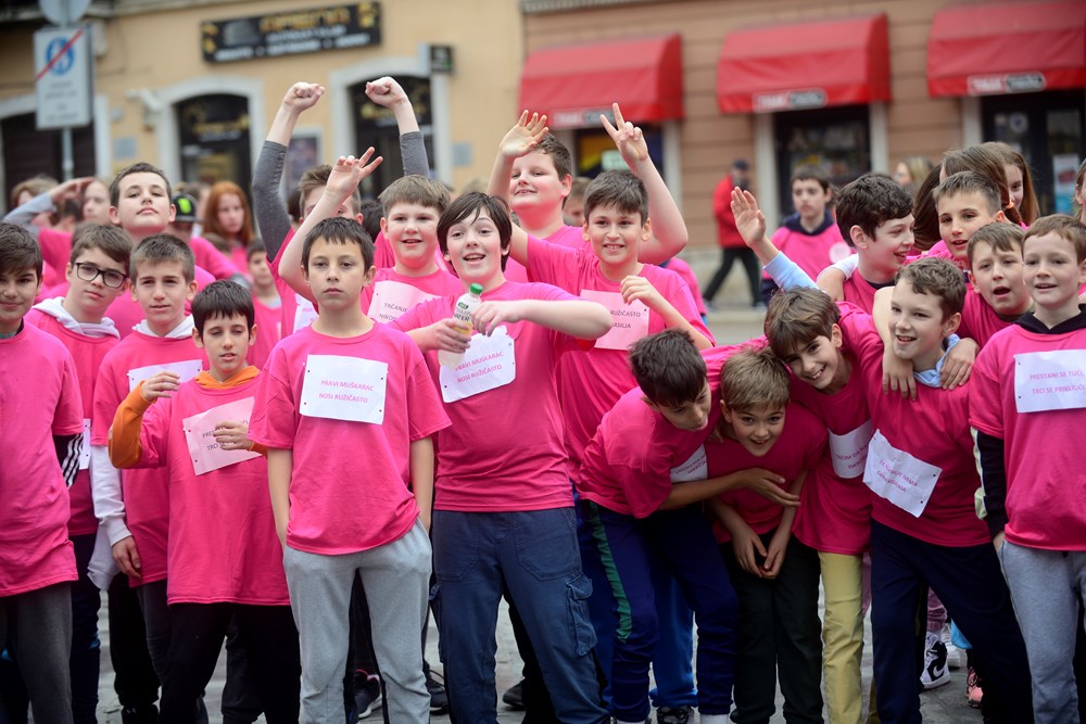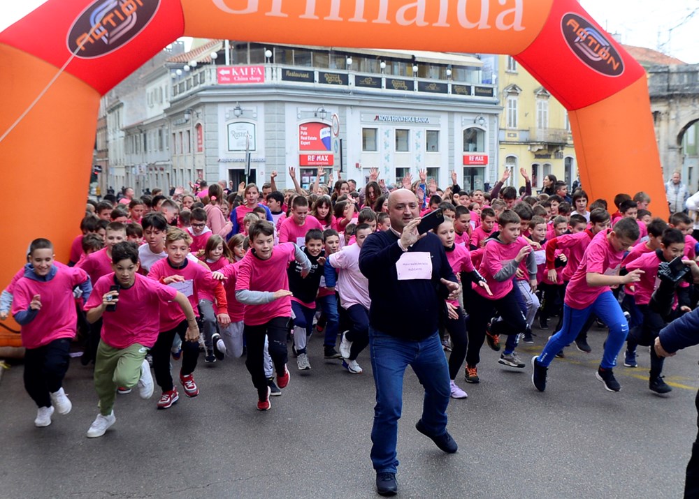 Učenici petih razreda devet pulskih osnovnih škola, njih preko 470, sudjelovalo je danas na Trgu Portarata u revijalnoj utrci pod nazivom ''Trkom protiv nasilja'' i tako na prigodan način obilježilo Dan ružičastih majica.