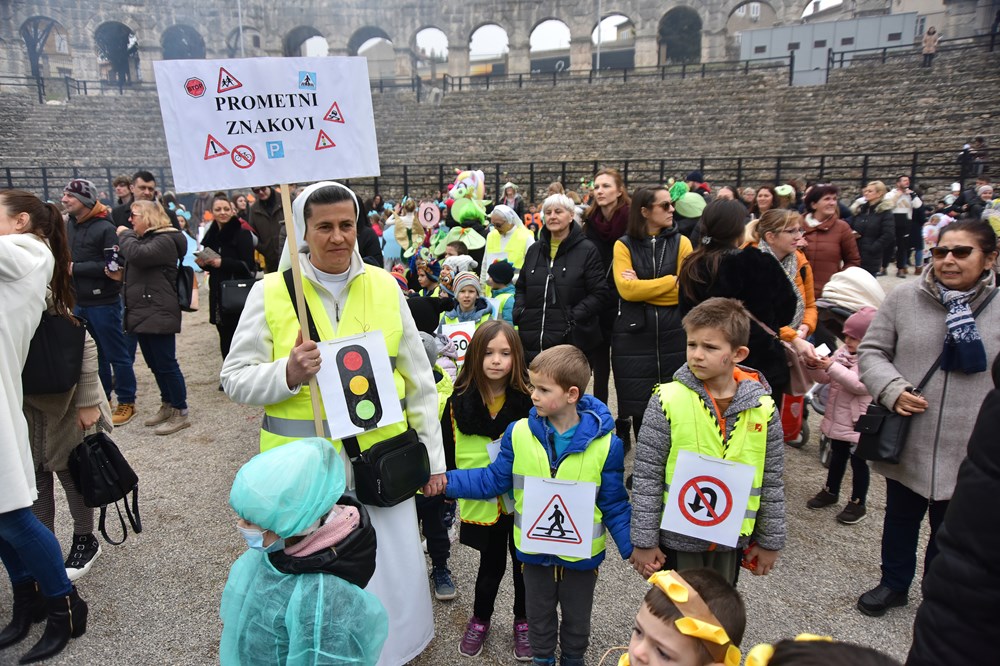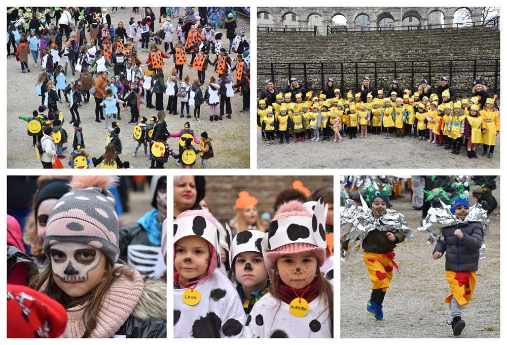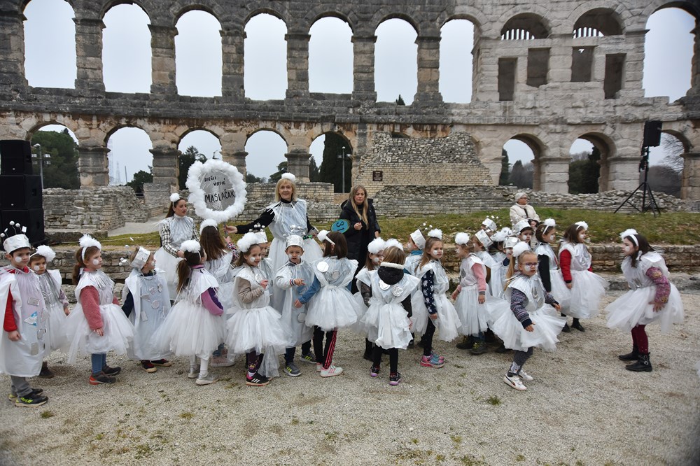 Mnoštvo roditelja, baka, djedova, došlo je vidjeti male maškare, koji su s nestrpljenjem čekali da defiliraju Arenom, a neke od skupina predstavile su se i prigodnom recitacijom ili pjesmom.