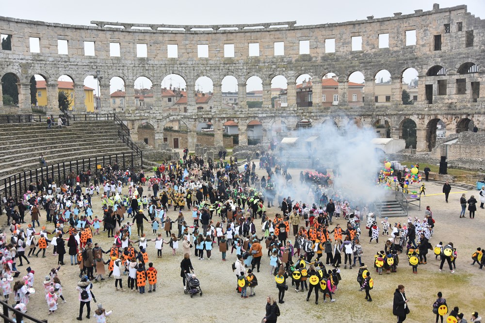 Sudjelovalo je oko 1.304 djece, odnosno 63 vrtićke skupine ili školskih razreda koji su činili ukupno 36 maškaranih grupa, došli su iz Pule i okolice, dok se za animaciju pobrinula Zemlja zabave, a kroz program je vodila Jelena Vitasović.